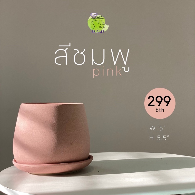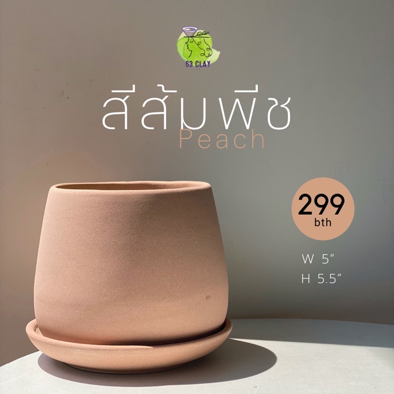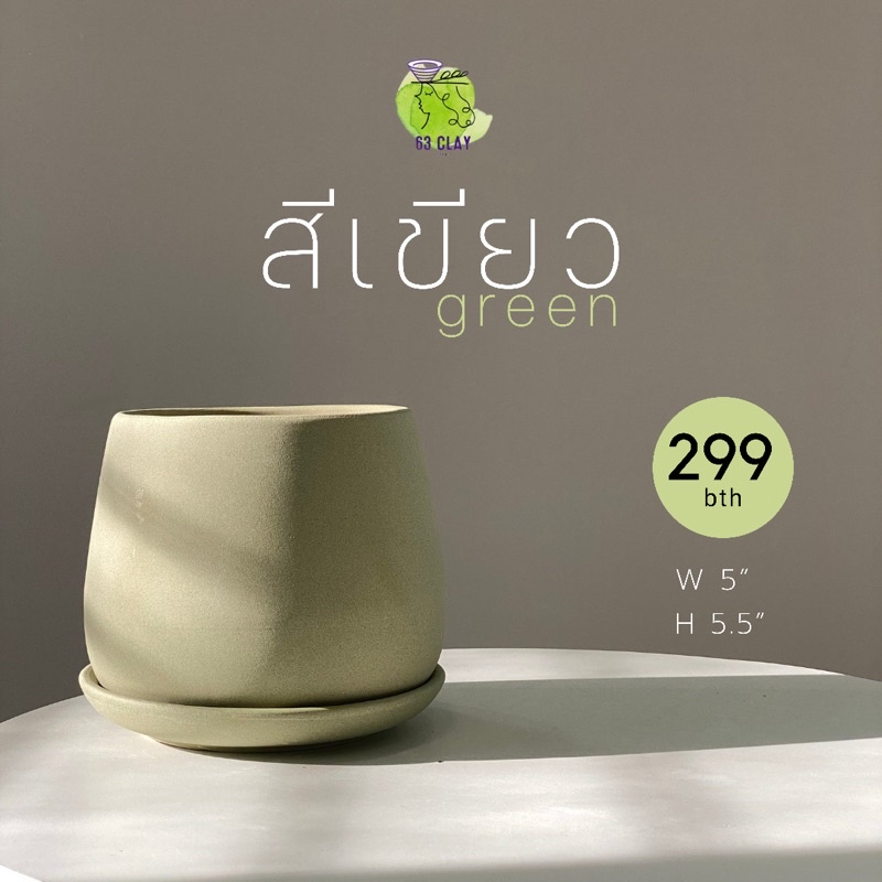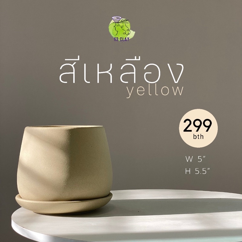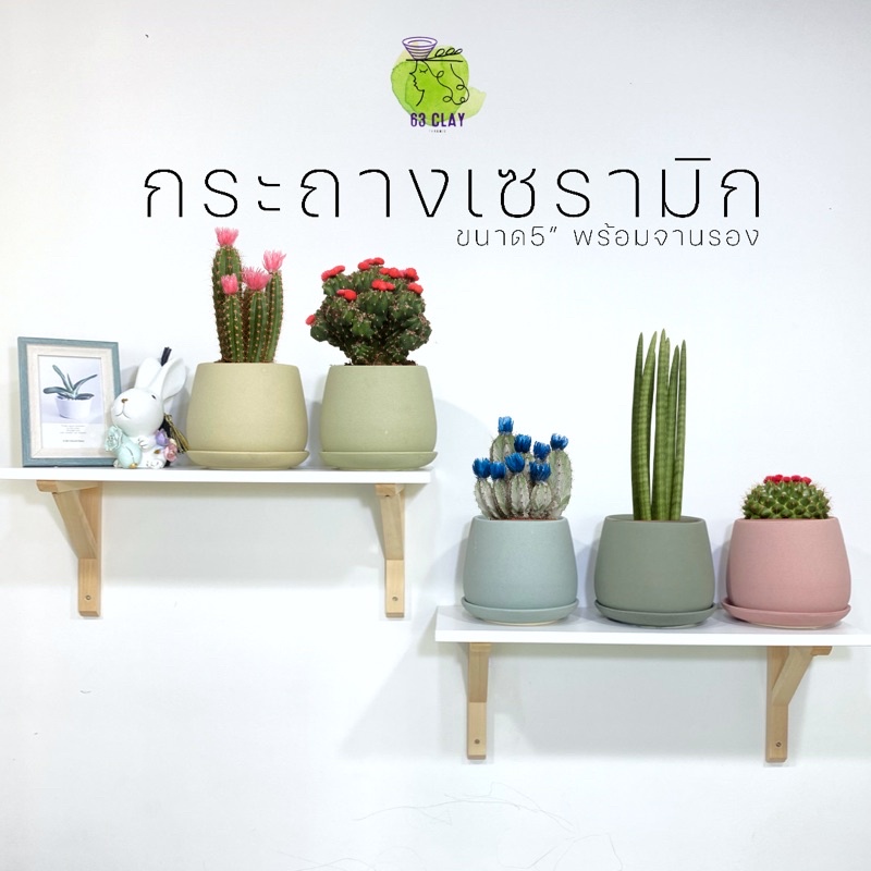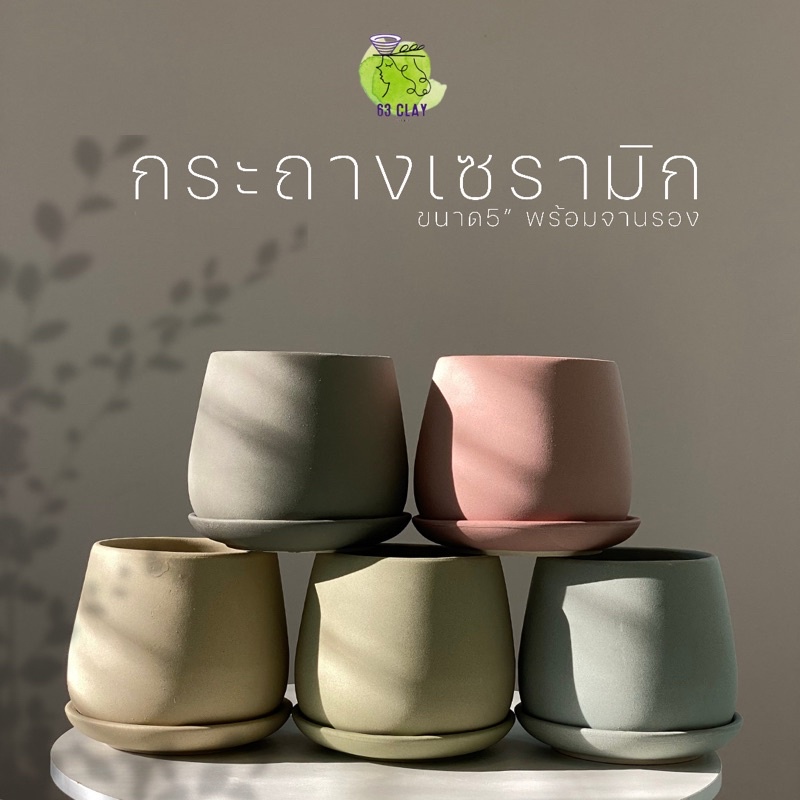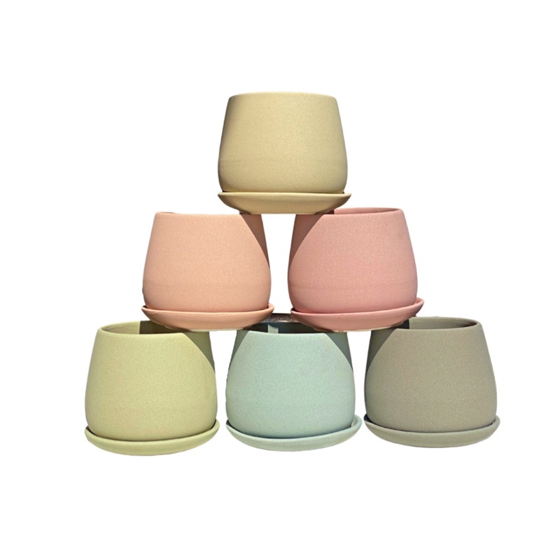 กระถางเซรามิก ทรงหยดน้ำขนาด5” พร้อมจานรองเนื้อทราย