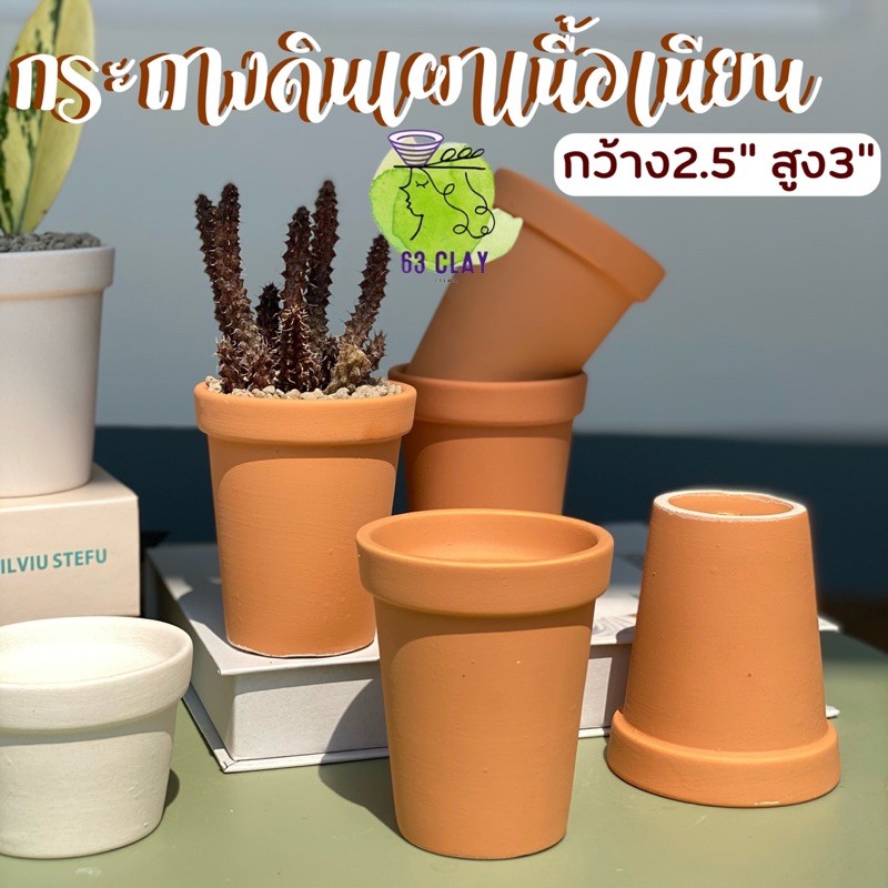 กระถางดินเผา กระถางแคตตัส เนื้อกระถางละเอียด เนียนสวยงามขนาด2.5”