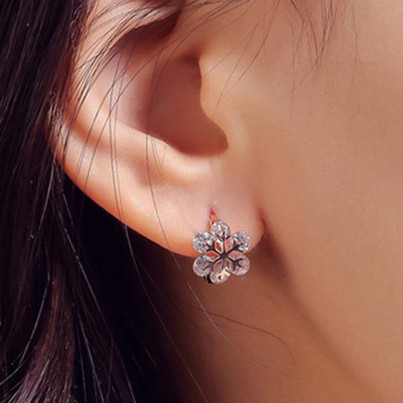 ต่างหูเงิน 92.5% ประดับคริสตัล สไตล์เรียบง่าย อ่อนหวาน สำหรับผู้หญิง