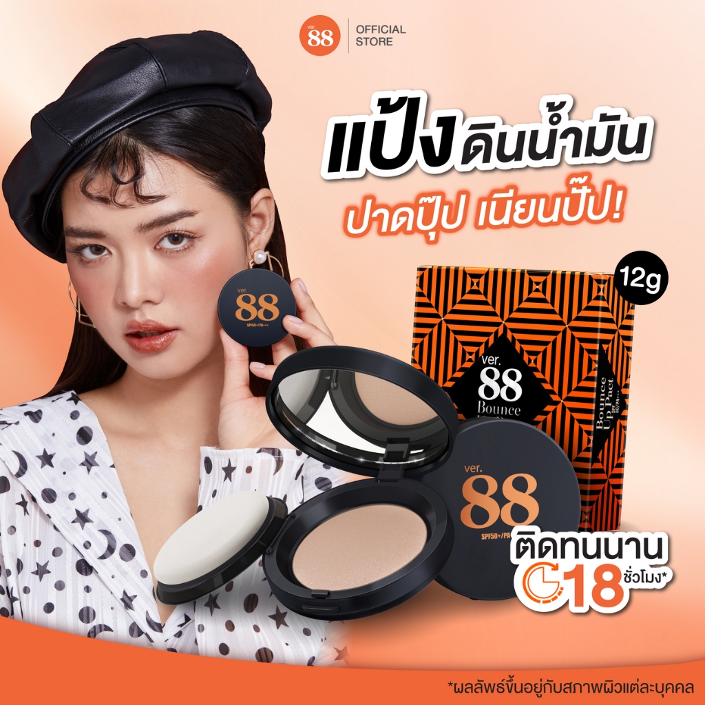 แป้งดินน้ำมัน Ver.88 Bounce Up Pact SPF 50/PA+++ ปกปิด คุมมัน 18 ชั่วโมง 12g