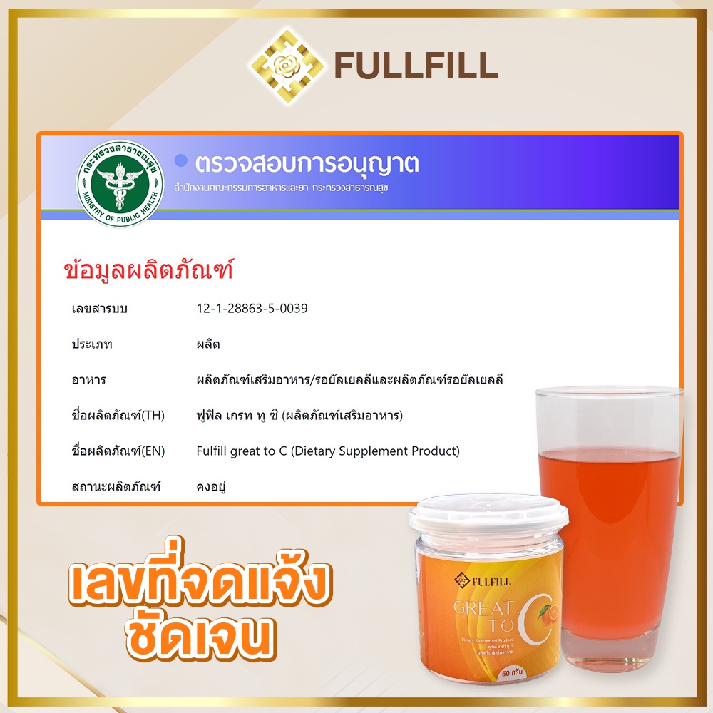 วิตามินซี ชนิดชงละลายน้ำ สูตรเข้มข้น 2 เท่า (Fulfill Great to C)