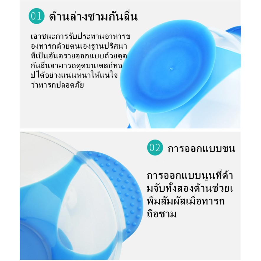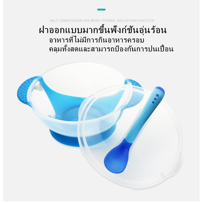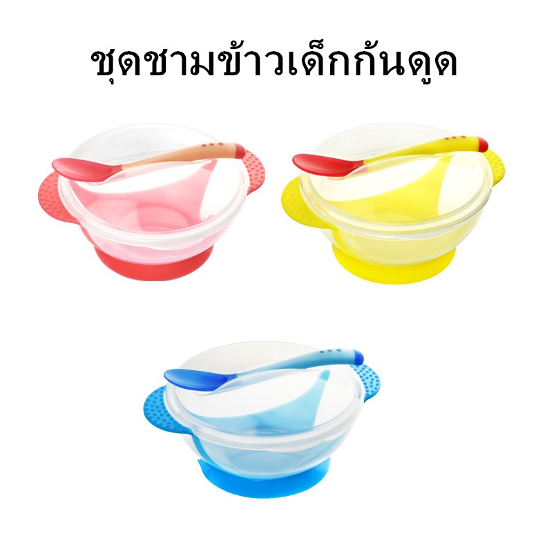 ชามข้าวเด็ก ชามก้นดูด เซ็ต 3 ชิ้น (ฝา/ชาม/ช้อน) ชุดชามข้าวเด็กก้นดูด ปลอดภัยไม่มีสารพิษ ชามสำห รับเด็ก และช้อนนิ่มวัดอุณห