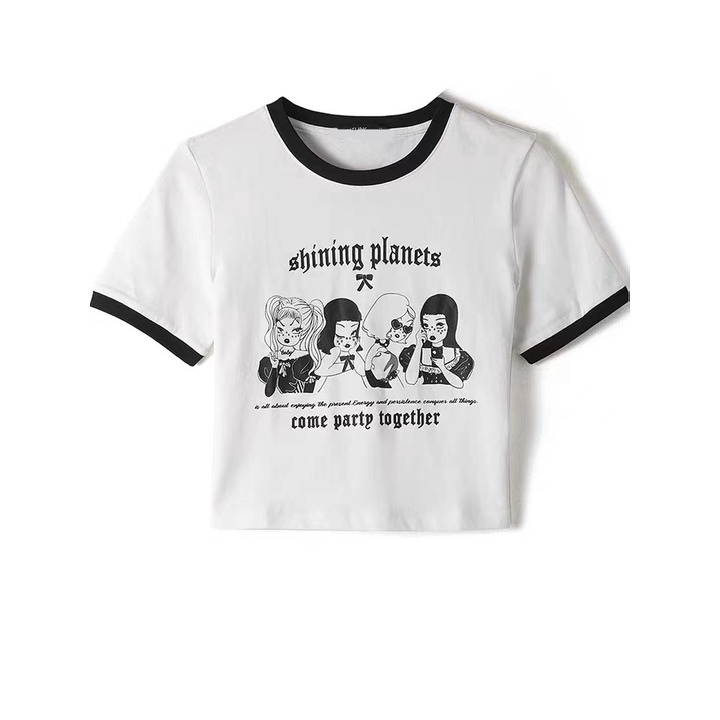 【WJZ】เสื้อยืดแขนสั้นคอกลมพิมพ์ลายการ์ตูนหวานของผู้หญิงทันสมัย【6696】
