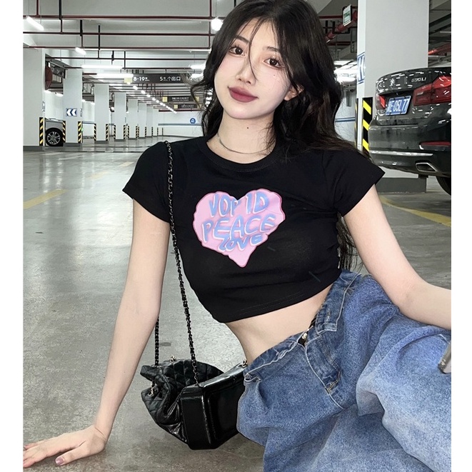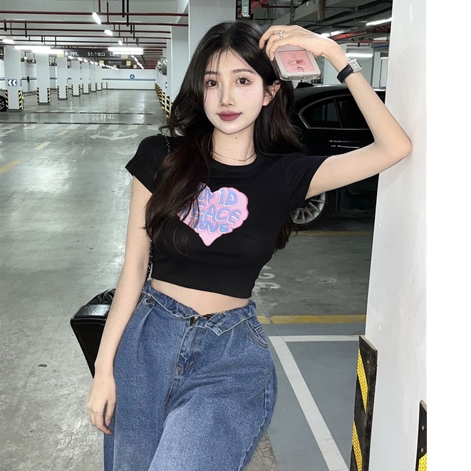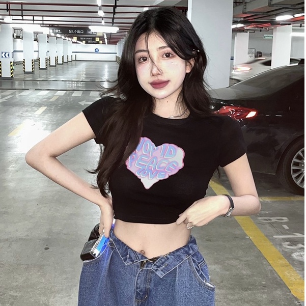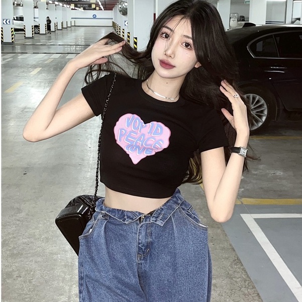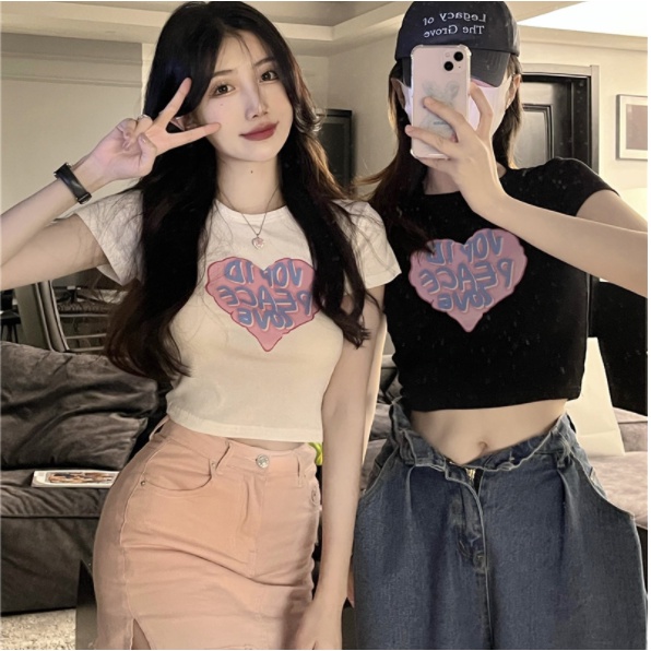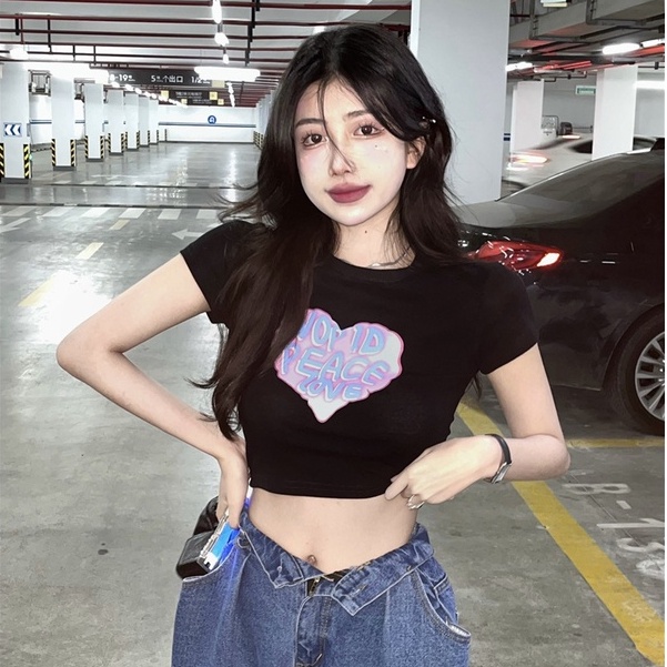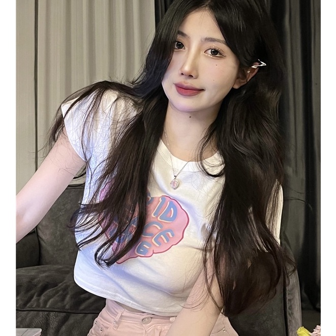 【WJZ】 เสื้อยืดแขนสั้นพิมพ์ลายแฟชั่นสไตล์เกาหลีสำหรับผู้หญิง【6769】