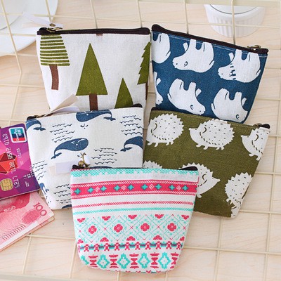 กระเป๋าใส่เหรียญ ผ้าลินิน พิมพ์ลาย สำหรับผู้หญิง