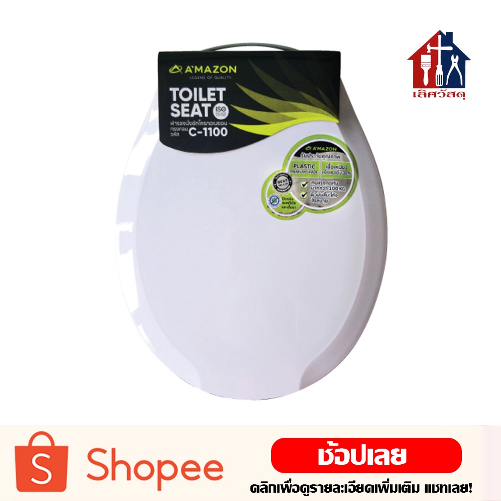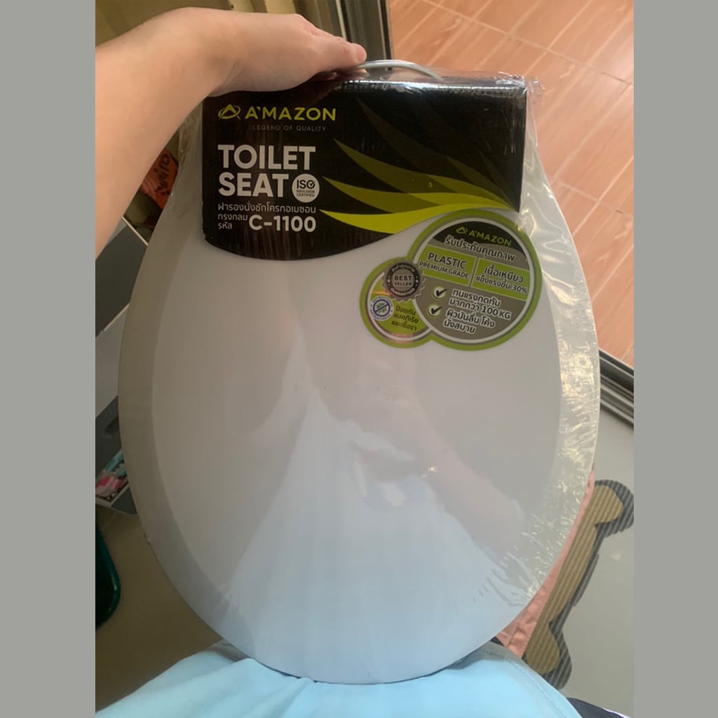 AMAZON ฝาชักโครก ทรงกลม (แกร่งสุดในปฐพี) ฝารองนั่งชักโครก สีขาว พร้อมน๊อตฝาชักโครก