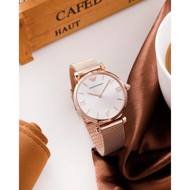 EMPORIO ARMANI นาฬิกาข้อมือผู้หญิง รุ่น AR1956 Retro Silver Dial - Rose Gold