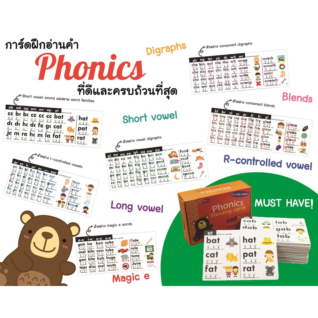 🔥ขายดีมาก🔥การ์ดฝึกอ่านคำ Phonics พร้อมภาพประกอบ และ File เสียงทุกคำ เรียนรู้ความหมายไปพร้อมกัน ยอดขายกว่า 4 พันชุด