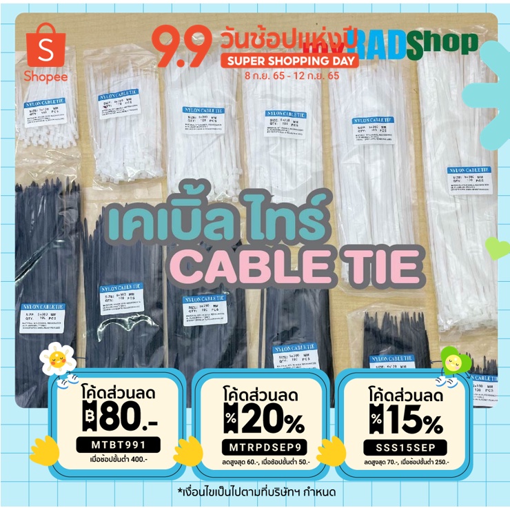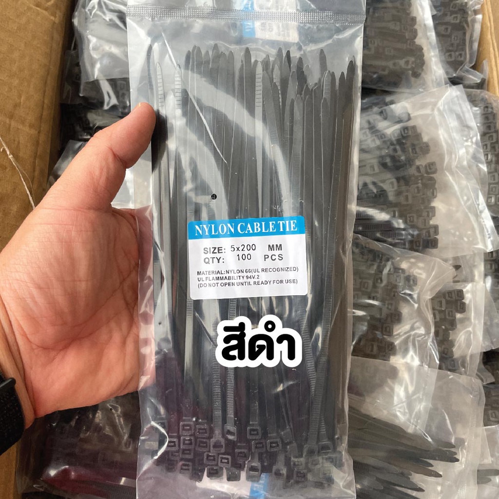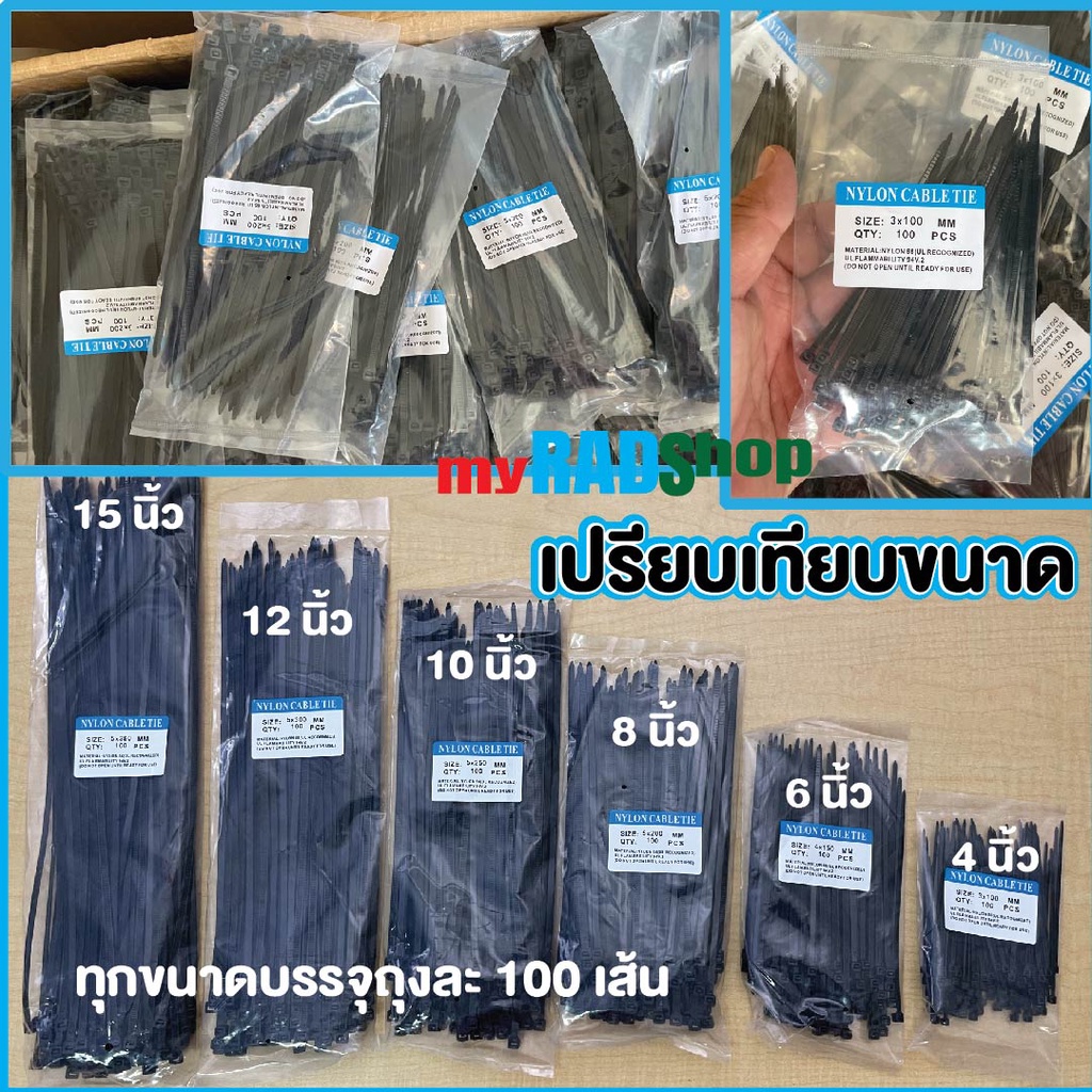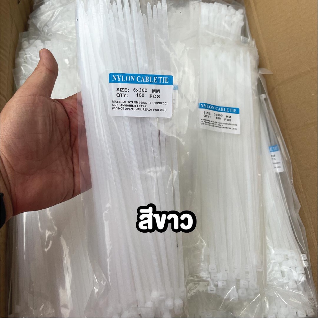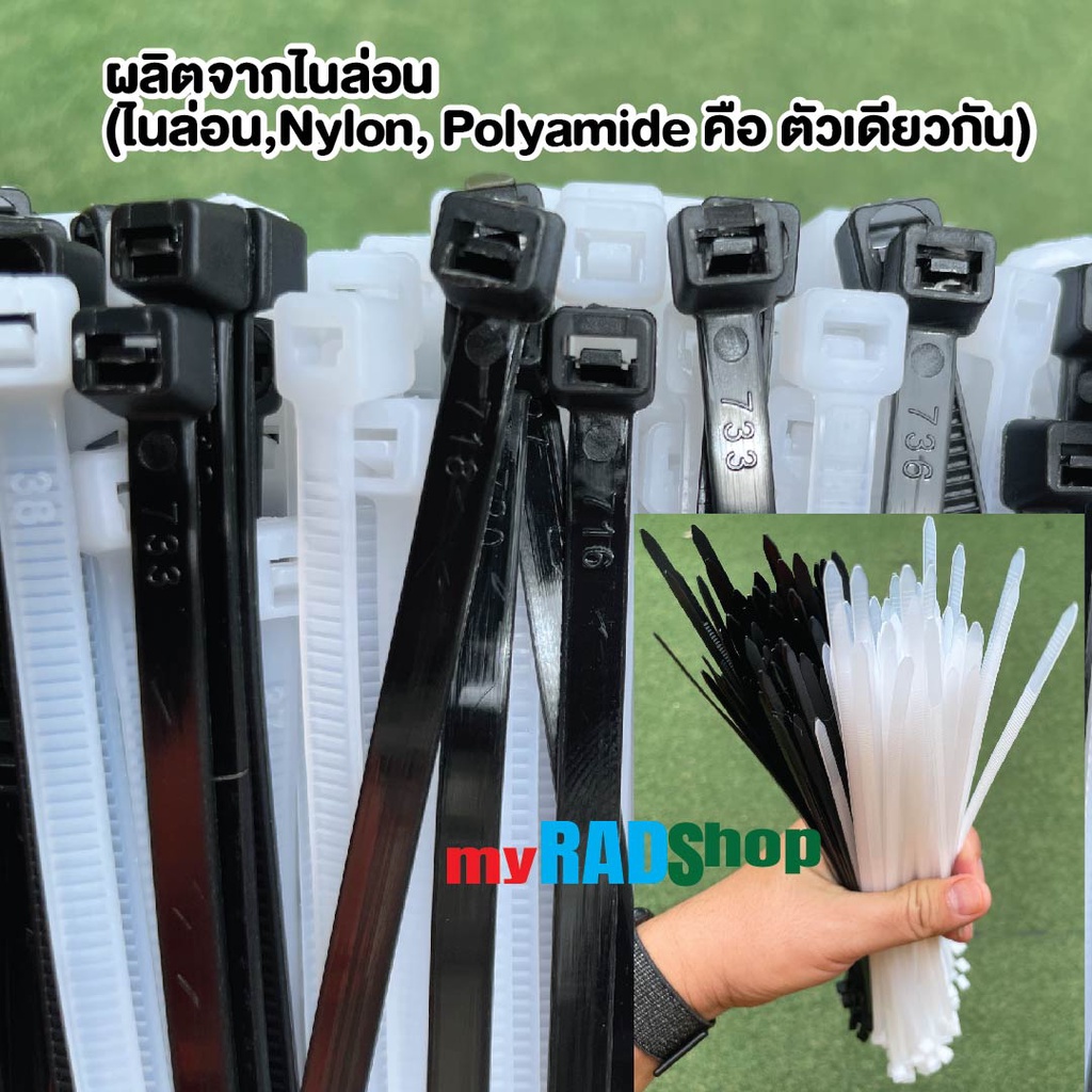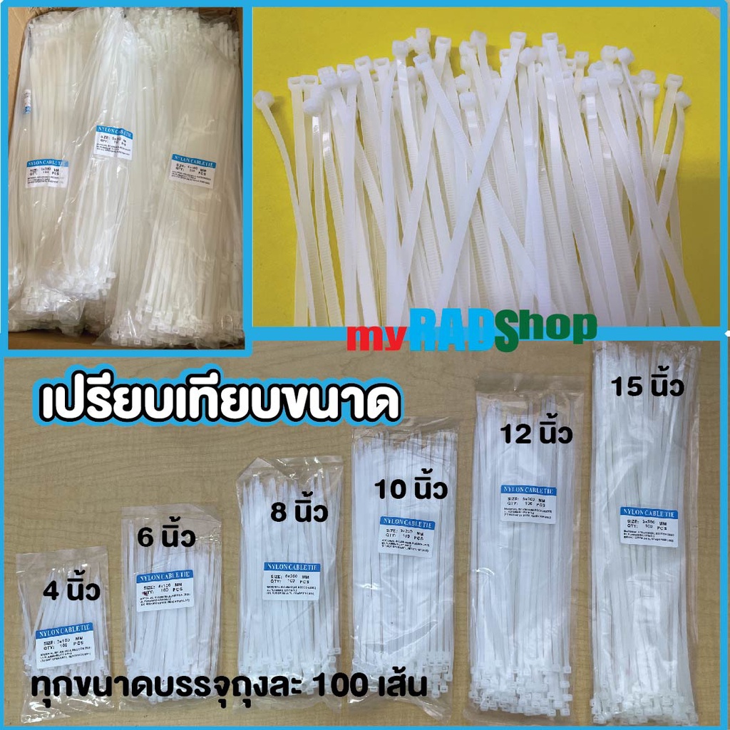 [ถุงละ 100 เส้น มี 2 สี ขาว/ดำ ]เคเบิ้ลไทร์ (Cable Tie) 4"/6"/8"/10"/12"/15" เหนียว รัดแน่น ล๊อกนาน ผลิตจาก Nylon 6
