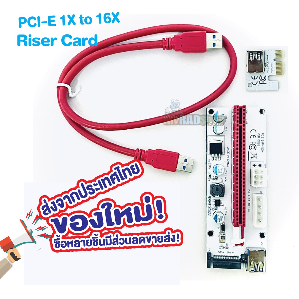 [SALES] Riser Card ไรเซอร์การ์ดจอ VER 008s PCIE 1X to 16X SATA 6PIN/4Pin สินค้าใหม่ สำหรับขุดเหมือง(18)ส่งจากประเทศไทย