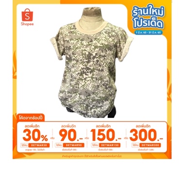 (ลดเหลือ 39.- เก็บโค้ดหน้าร้าน) เสื้อยืดเด็กลายดิจิตอลน้ำตาล ลายทหาร