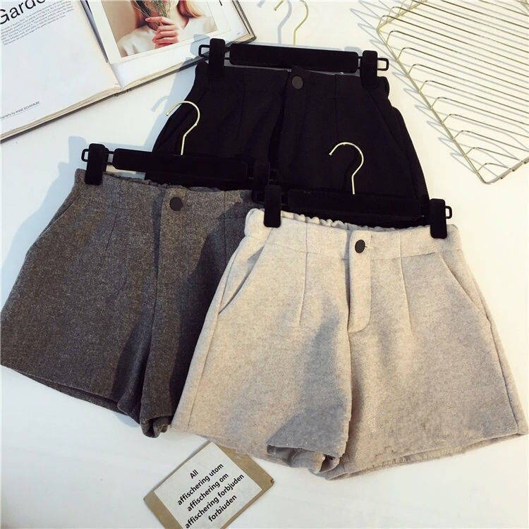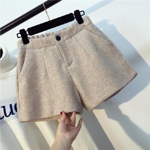 กางเกงขาสั้นแฟชั่น กางเกงขาสั้นผู้หญิง ผ้ากำมะหยีขนๆมีกระดุม กางเกงหน้าร้อน กระเป๋า2ข้าง ขากว้าง เอวยางยืด กางเกงลำลอง