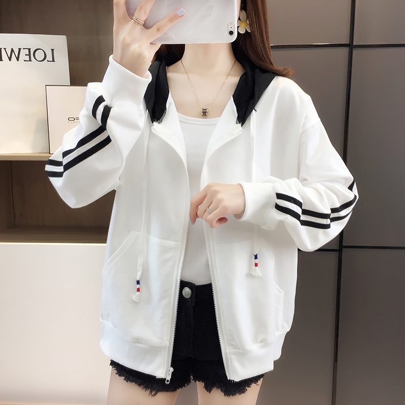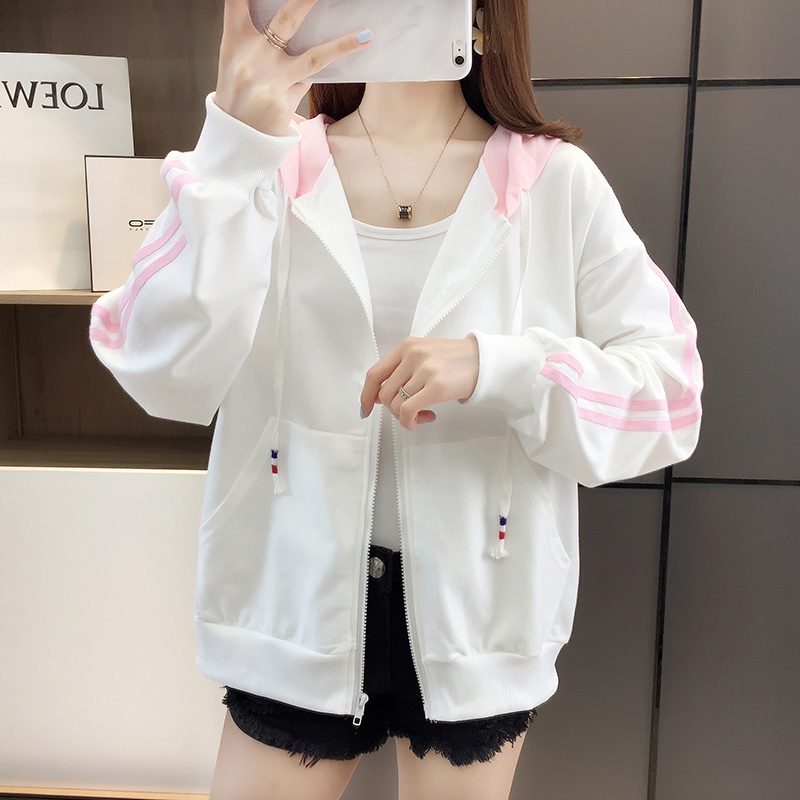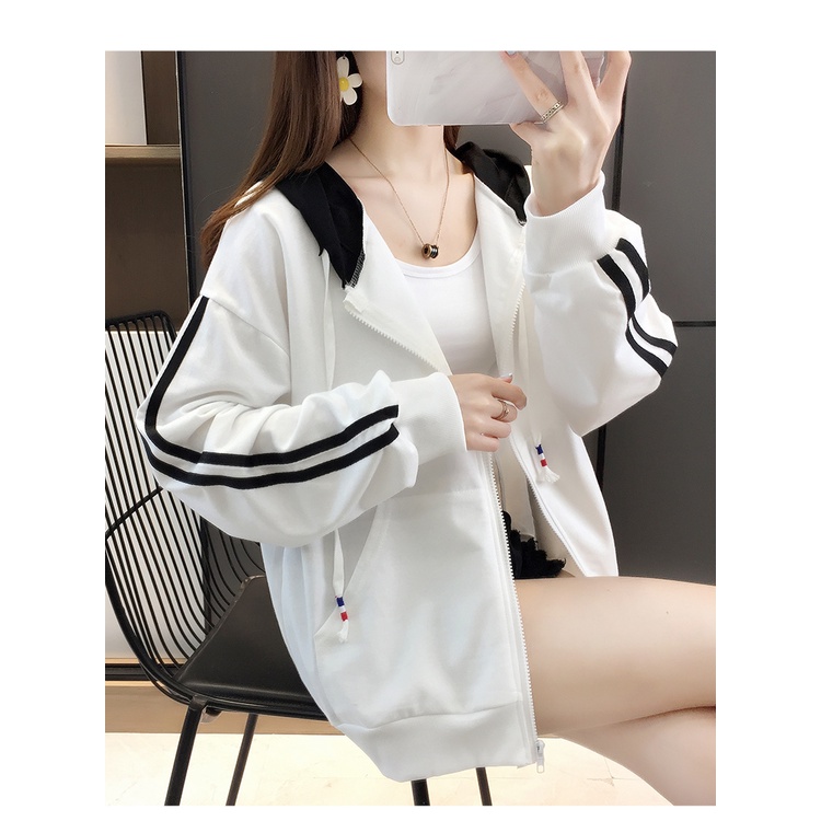 มาใหม่ เสื้อแจ็คเก็ตแขนยาวมีซิปหมวกกระเป๋าผ้าดีผ้านุ่มใส่สบาย คลุมกันร้อนกันหนาวผู้หญิง ฮู้ดดี้