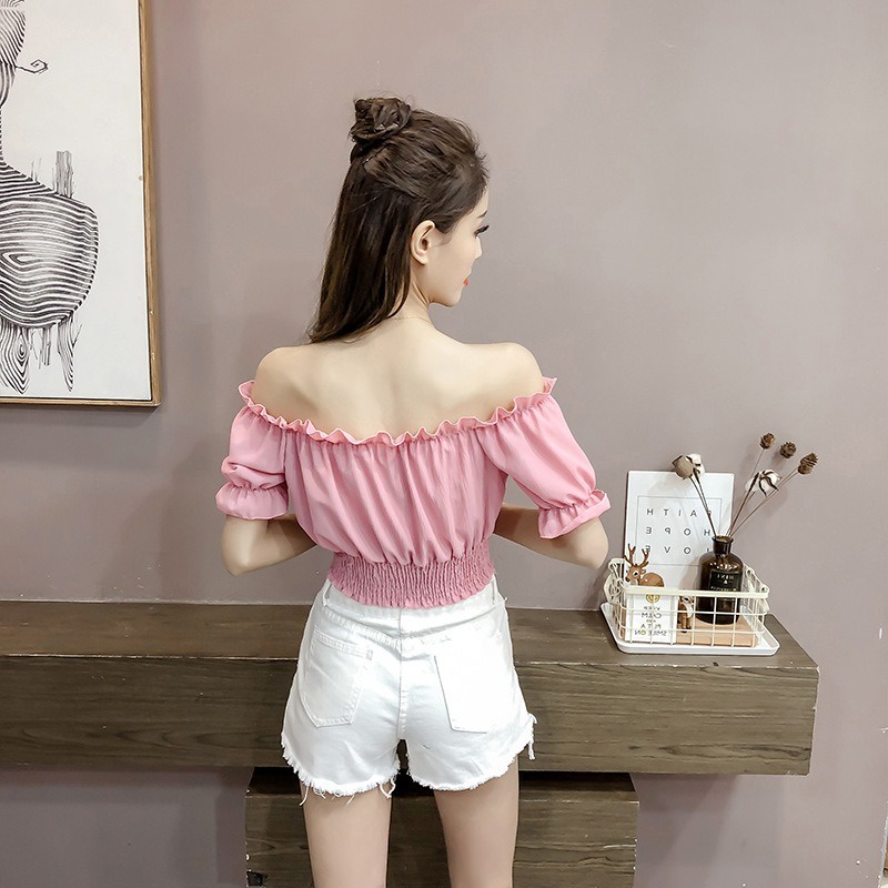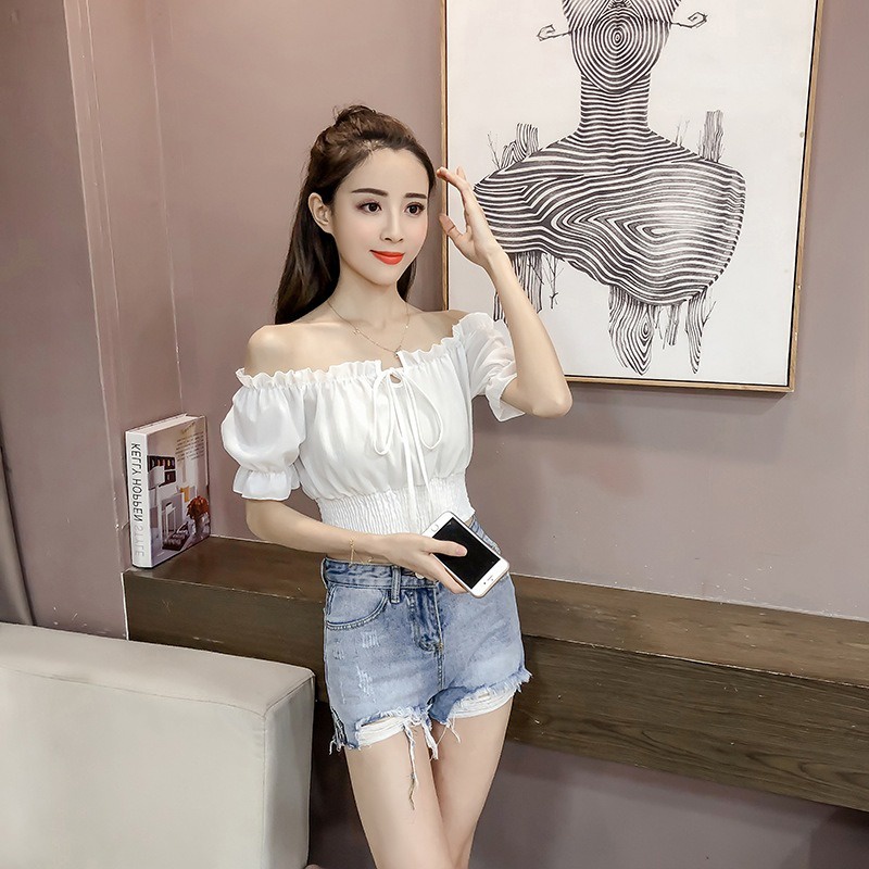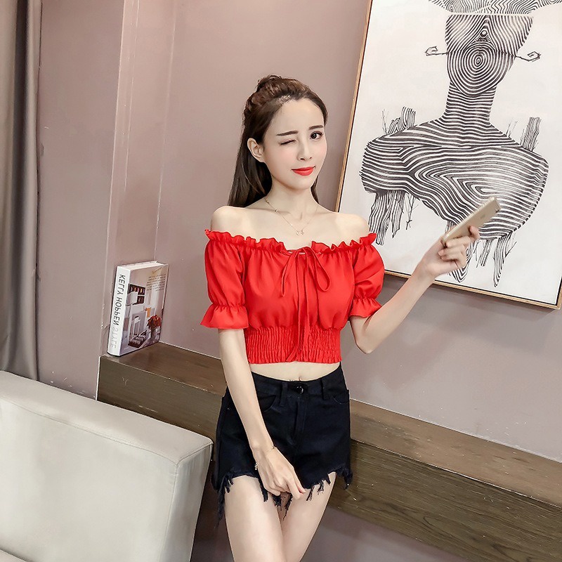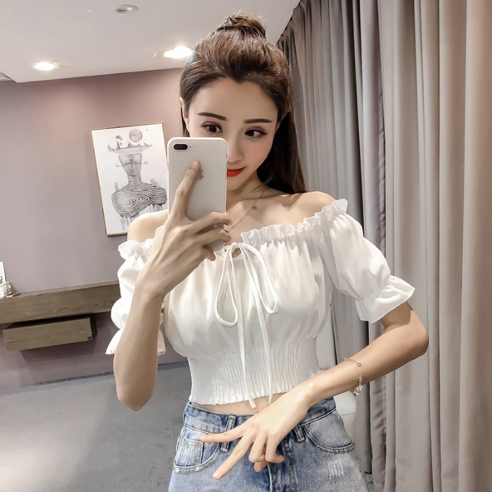 เสื้อครอปปาดไหล่เอวลอย ครอปแขนสั้น ใส่เป็นกาะอกได้ ครอปเอวลอย เสื้อแขนตุ๊กตา ดอลลี่ มัดเชือกผูกแกะได้ เสื้อแฟชั่นผู้หญิง