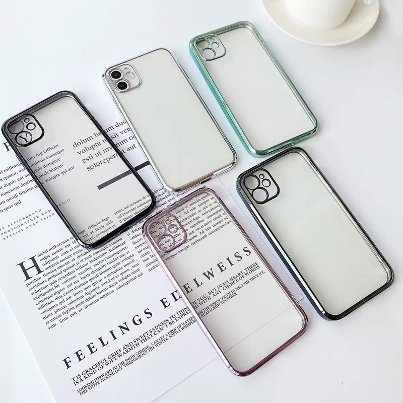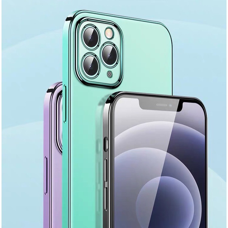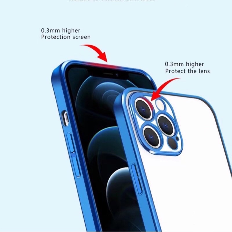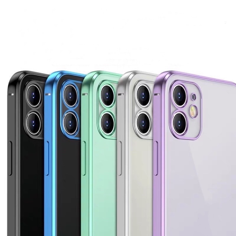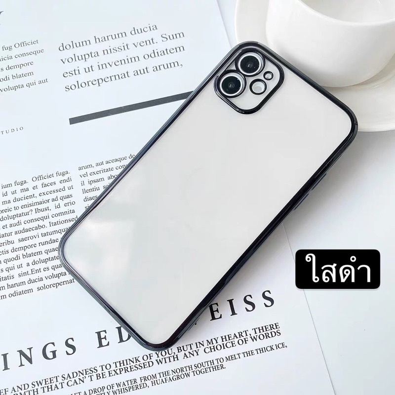เคสขอบเงากันรอยกล้อง เคสหลังใสiP 11 ip12 /12pro 7plus/8plus 12promax SE 2020เคลือบเงา งานสวย iphoneรุ่นใหม่