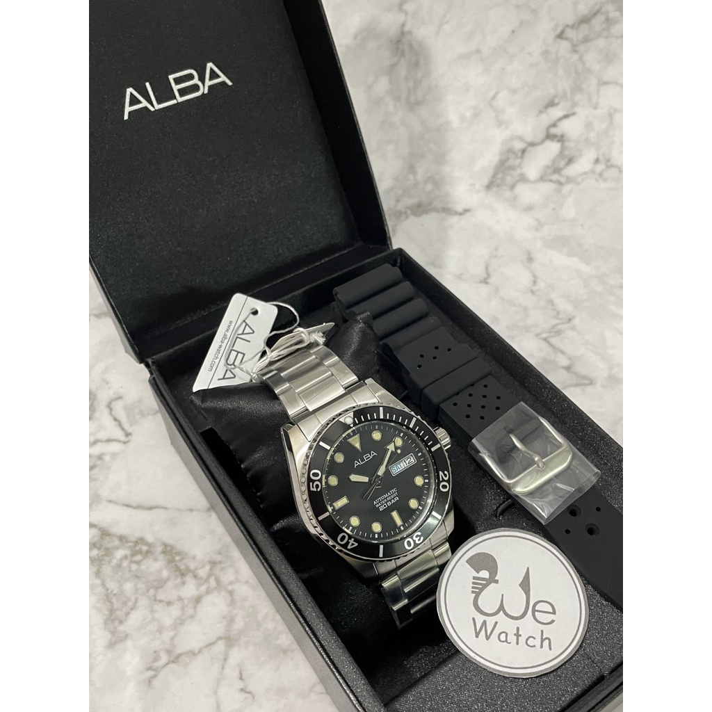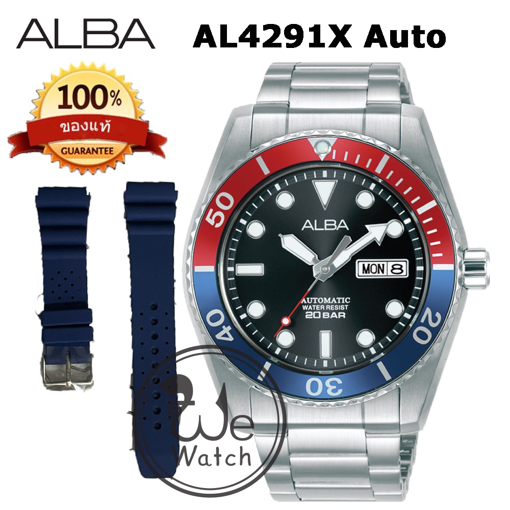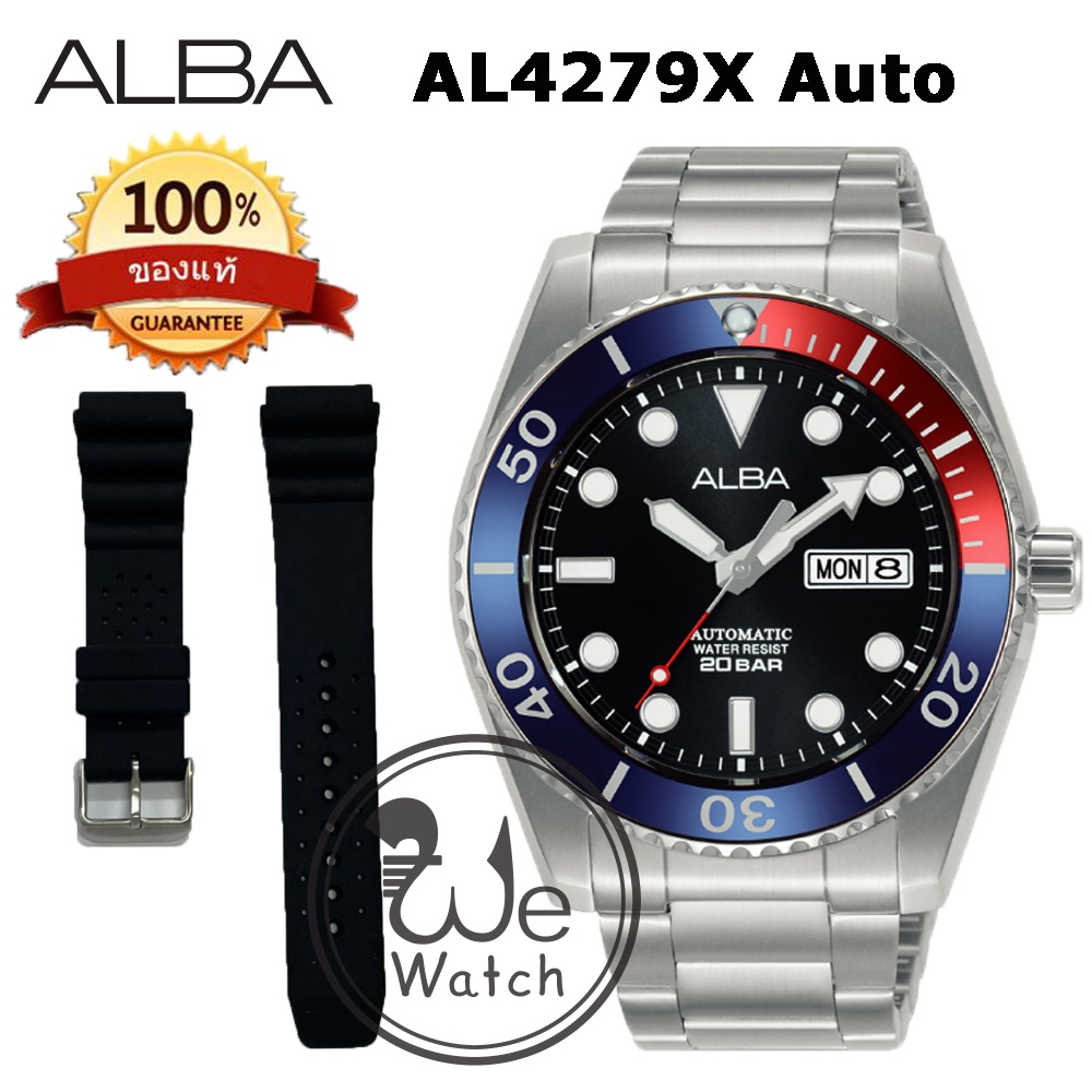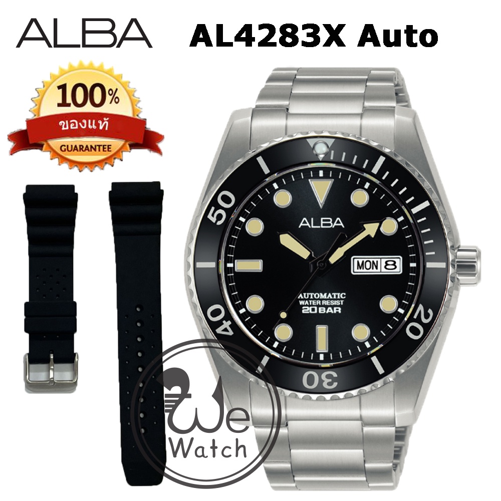 ALBA AUTOMATIC รุ่น AL4279X AL4281X AL4283X ขอบหยัก พร้อมสายซิลิโคนและกล่องดีไซน์ นาฬิกาชาย เครื่อง