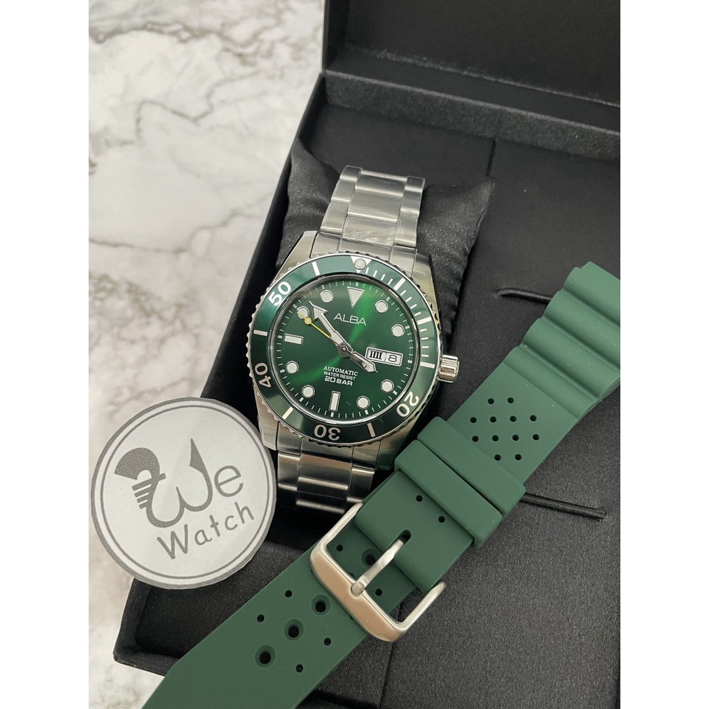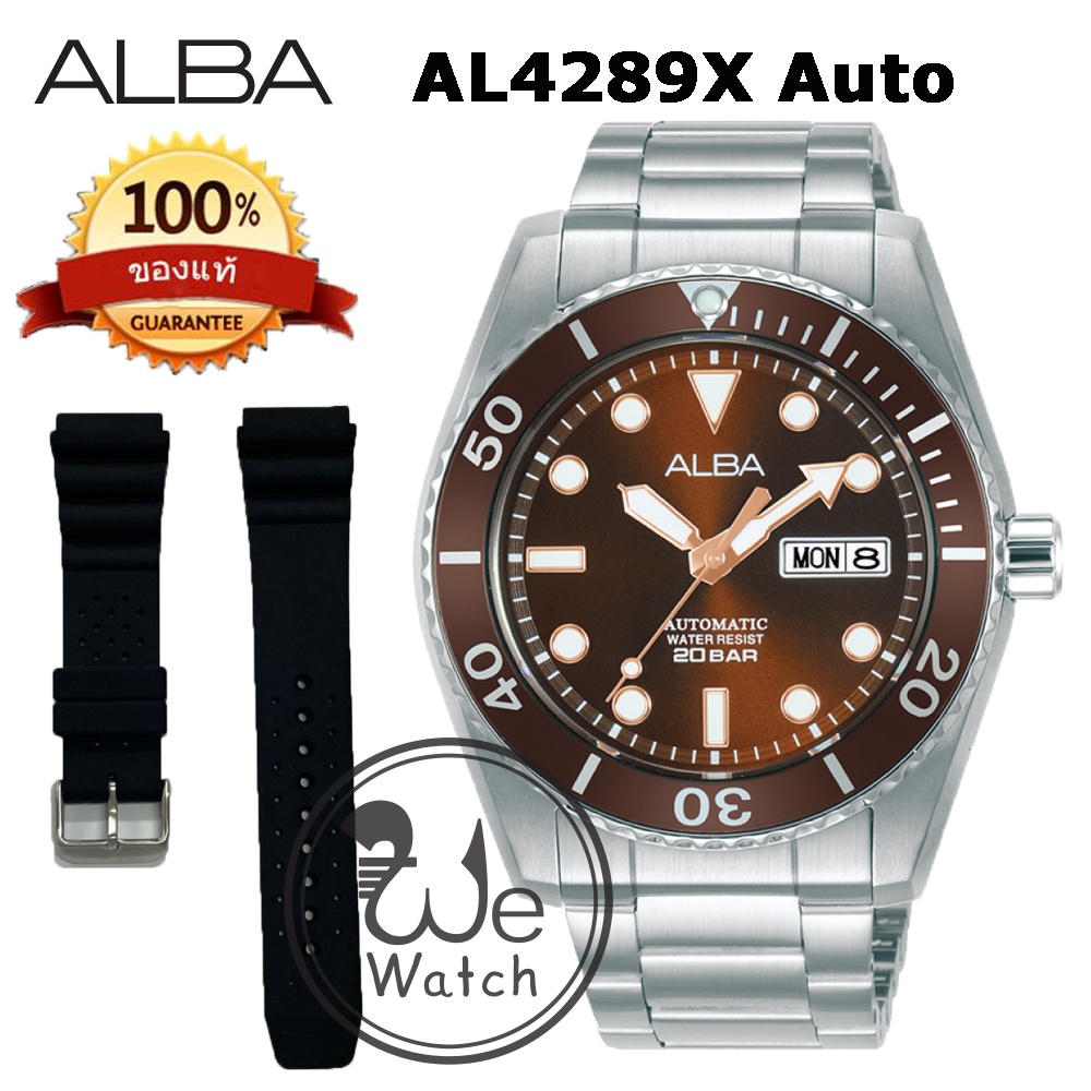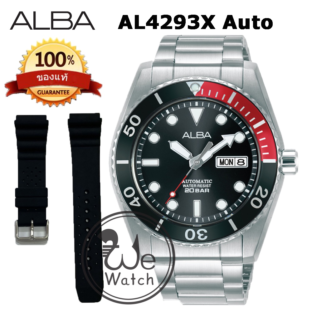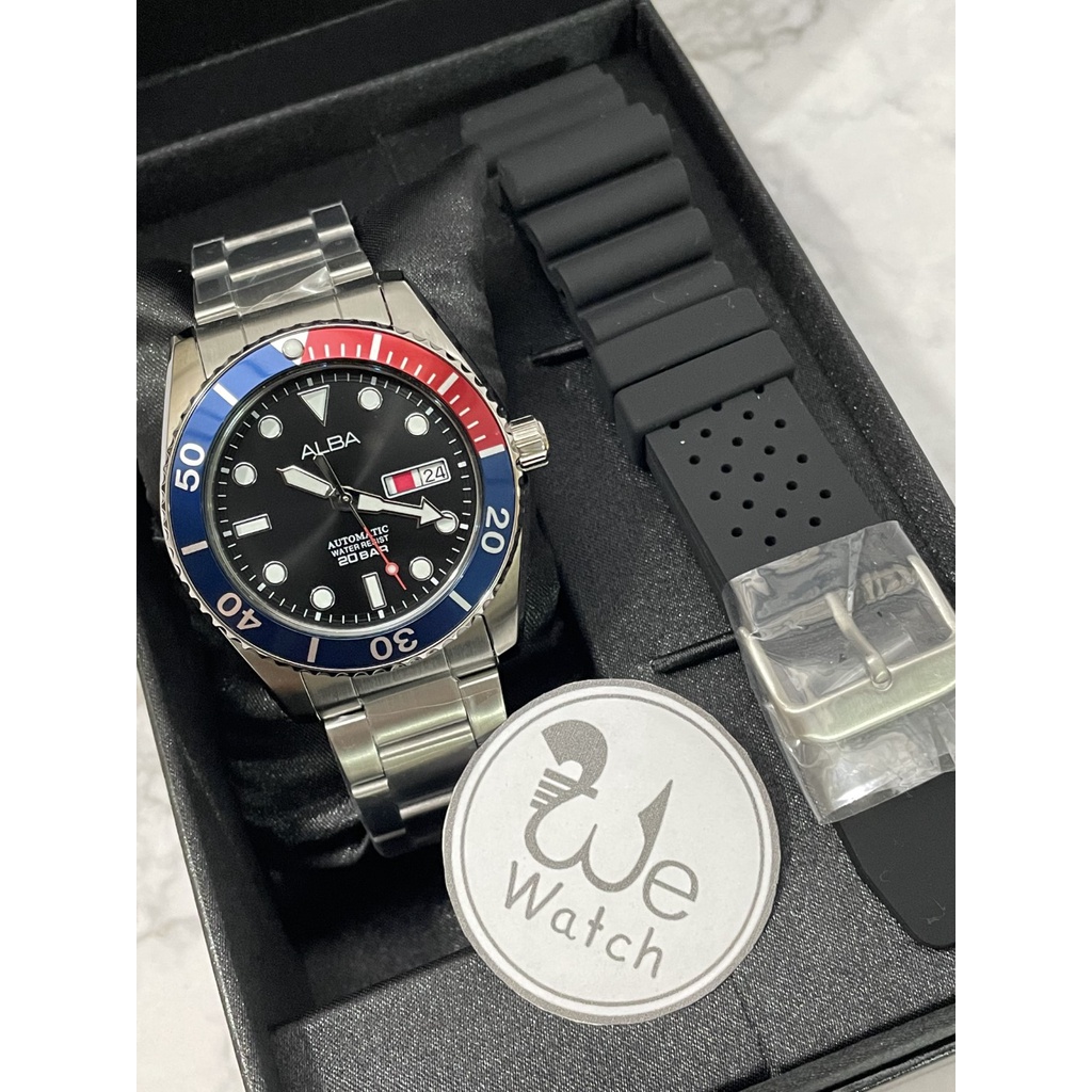 ALBA AUTOMATIC รุ่น AL4279X AL4281X AL4283X ขอบหยัก พร้อมสายซิลิโคนและกล่องดีไซน์ นาฬิกาชาย เครื่อง