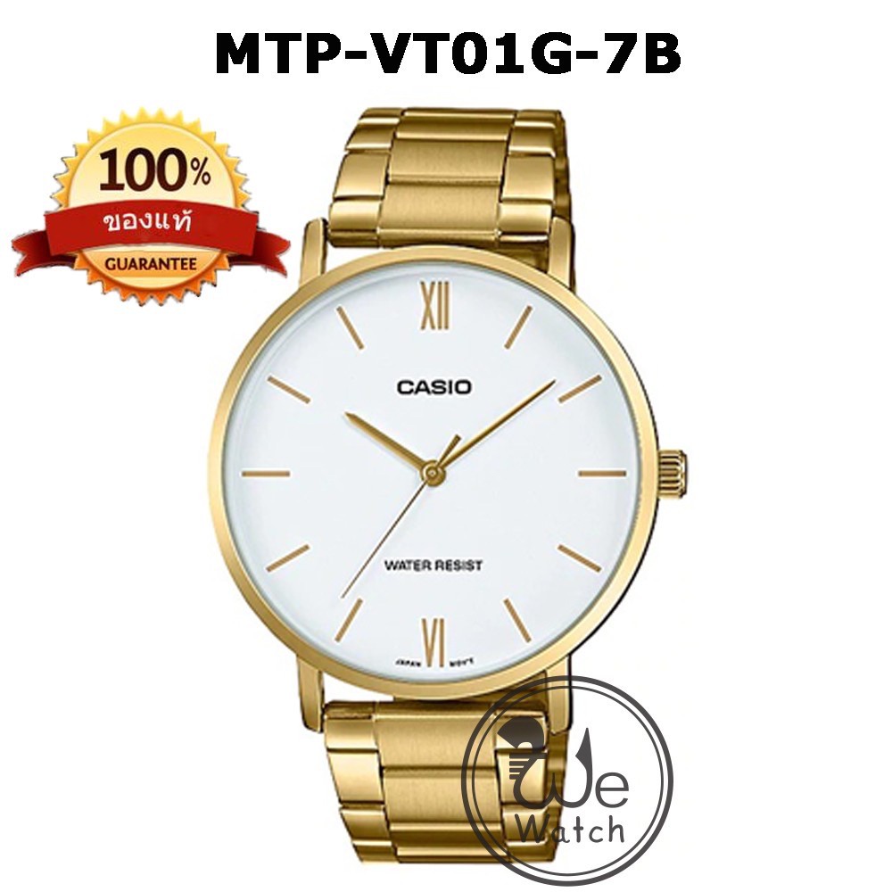 CASIO ของแท้ 💯% รุ่น LTP-VT01G MTP-VT01G นาฬิกาหญิงและชาย สายสแตนเลส สีทอง ประกัน 1 ปี LTPVT01 MTPVT01 LTPVT01G MTPVT01G