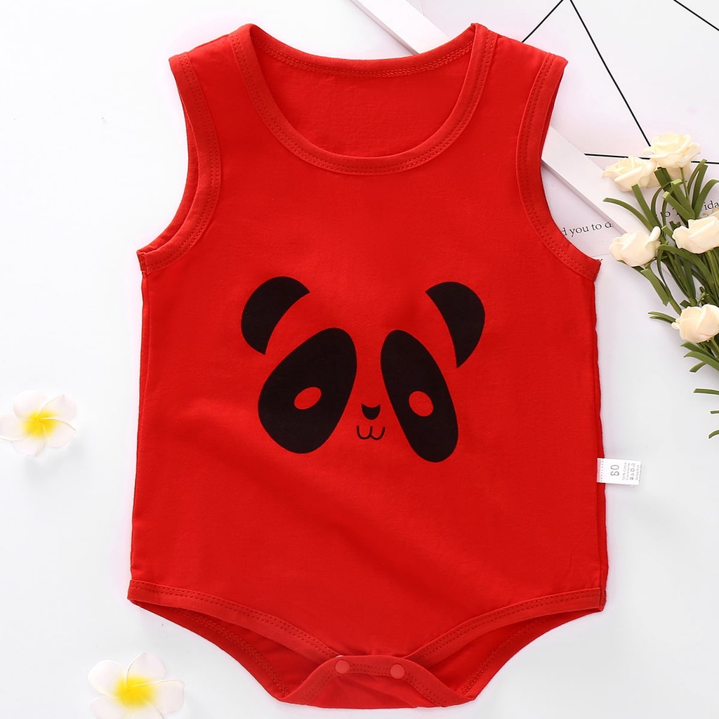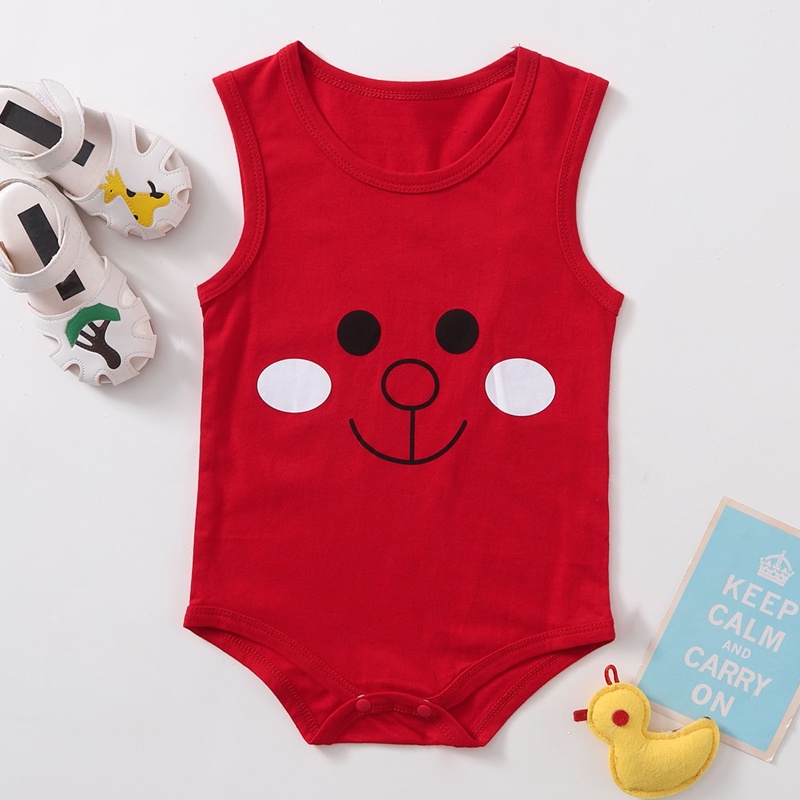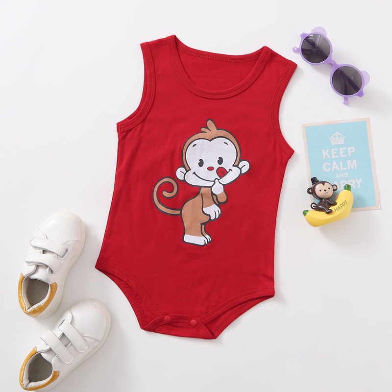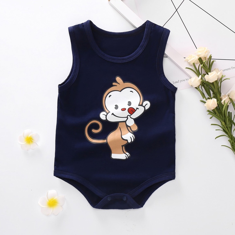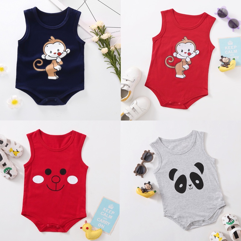 Ready Stock ชุดจั๊มสูทผ้าฝ้าย แขนกุดลายการ์ตูนสําหรับเด็กทารกวัย 0-24 เดือน