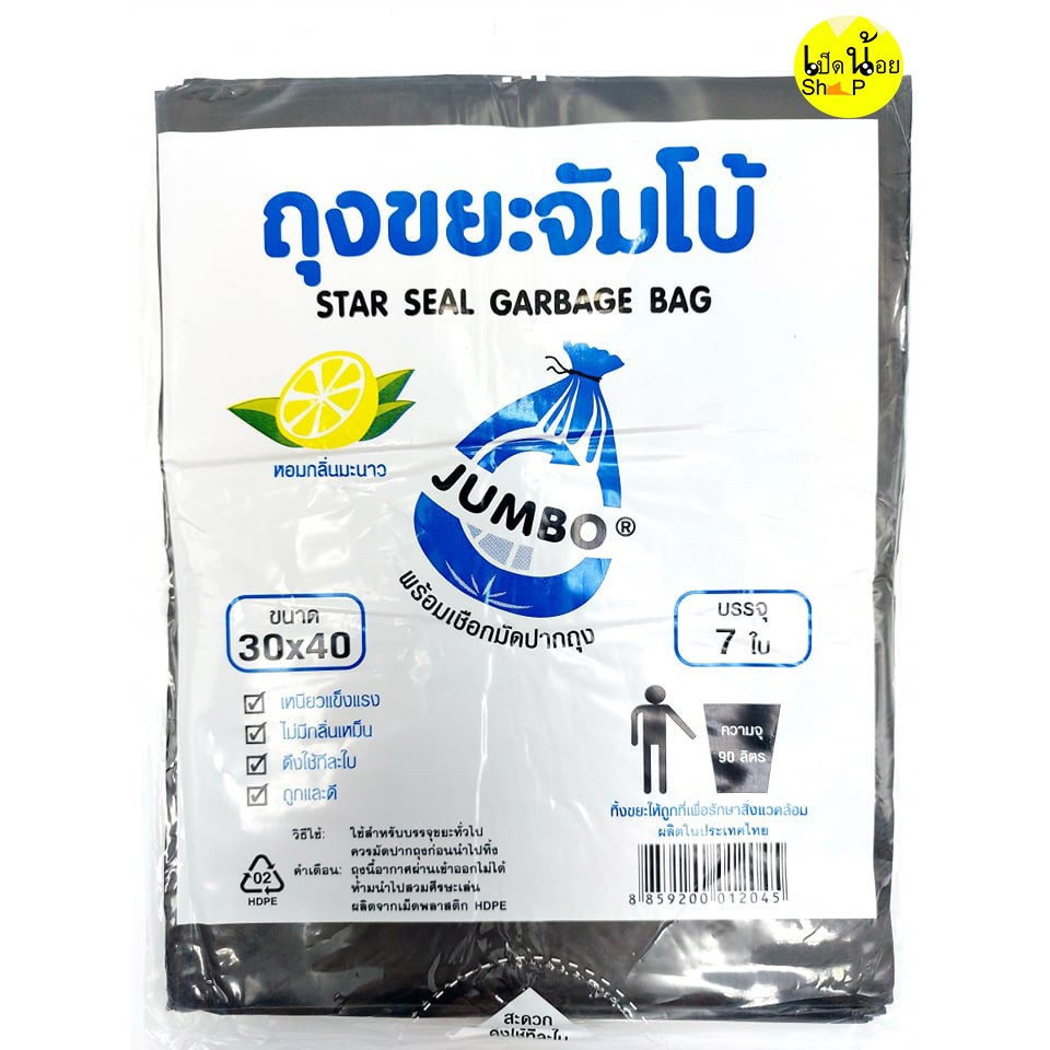 ถุงขยะจัมโบ้กลิ่นมะนาว หอม พร้อมเชือกมัดปากถุงดึง ใช้ง่าย ไม่รั่วซึม
