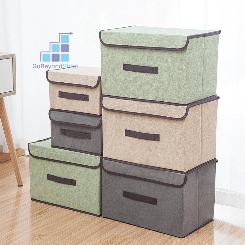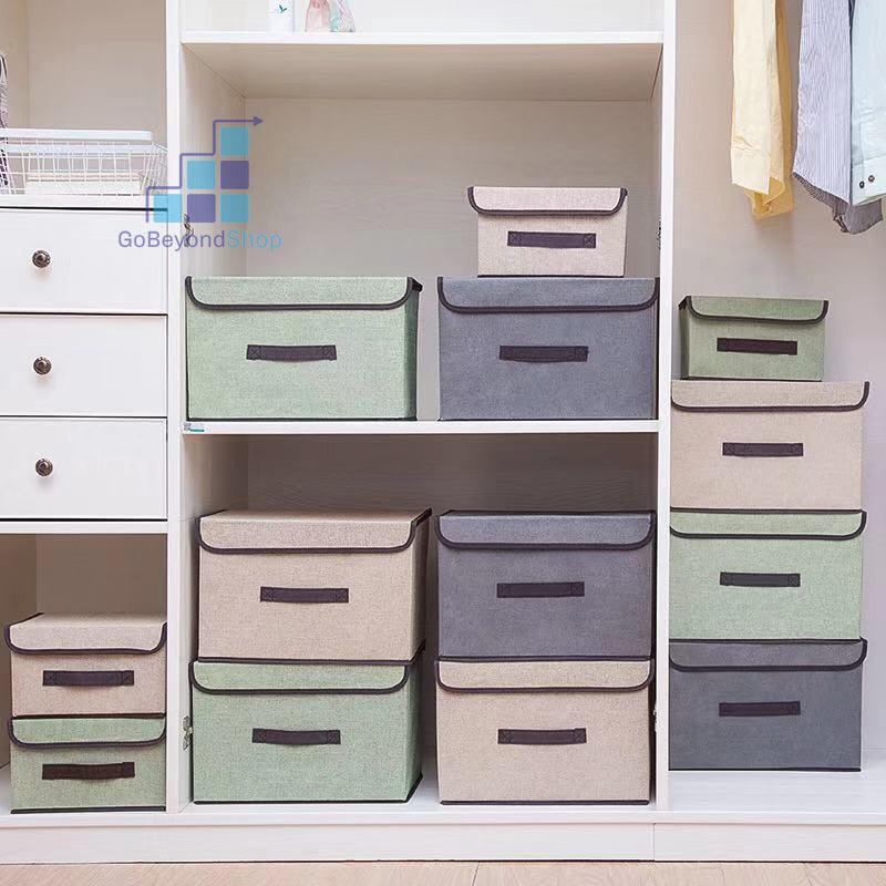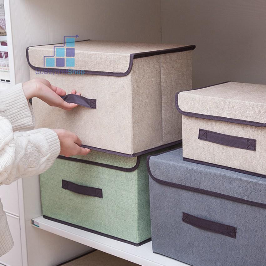 กล่องผ้าลินิน กล่องใส่เสื้อผ้า ภายในมีโครงกระดาษแข็งทำให้กล่องอยู่ทรง น้ำหนักเบา gb99