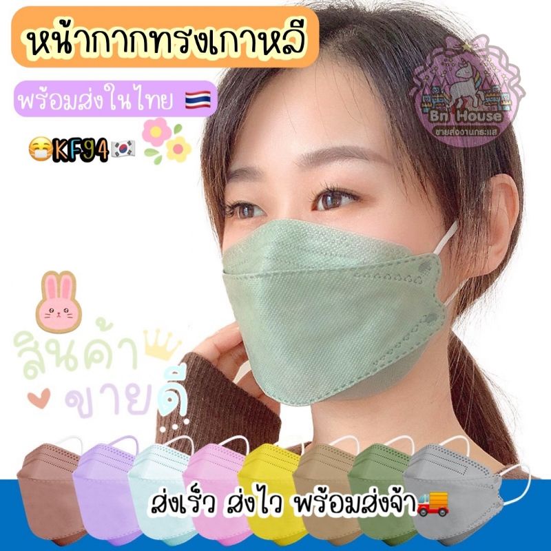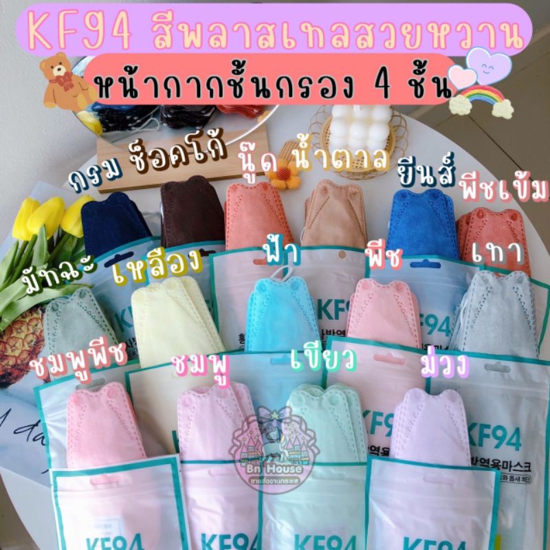 หน้ากากทรงเกาหลี รุ่น KF94 สีพลาสเทล แมสสุดฮิตความหนา 4 ชั้น พร้อมส่งในไทย (1 เเพคมี 10 ชิ้น)