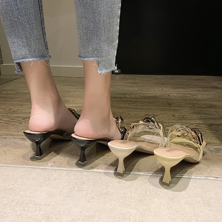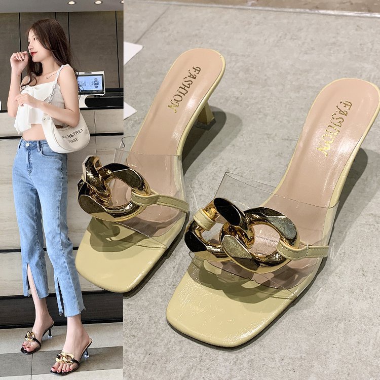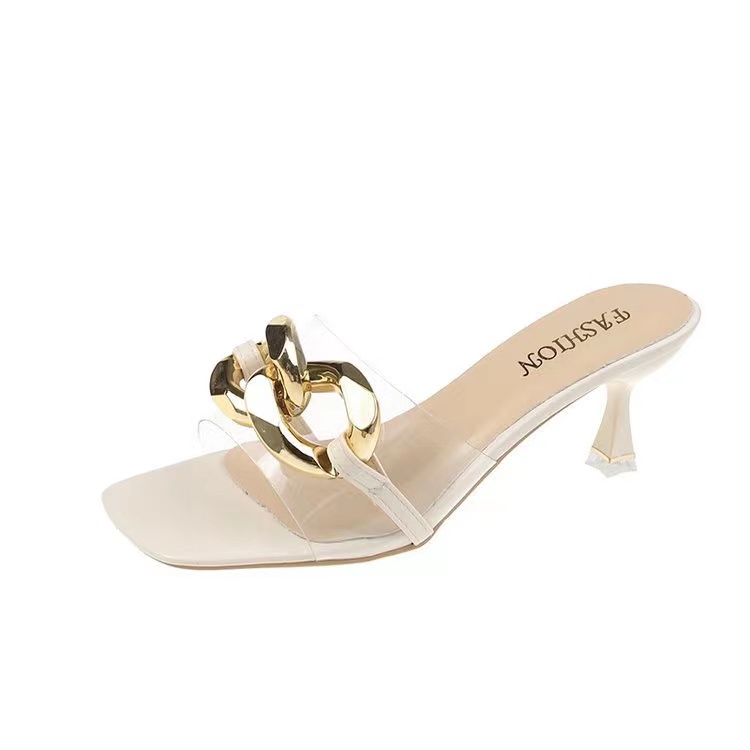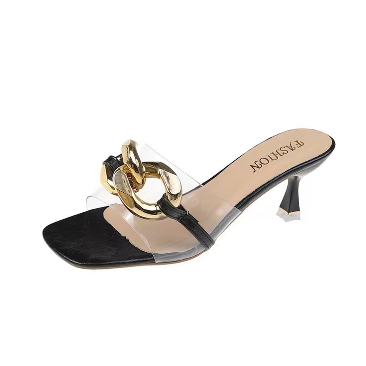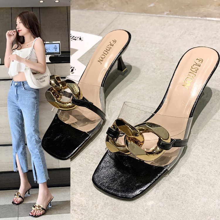 พร้อมส่ง!!! รองเท้าส้นสูง แบบสวมคาดใส่แต่งโซ่ KRG234