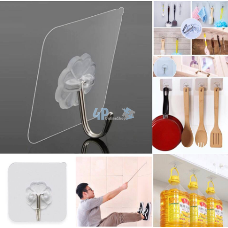 สินค้าพร้อมจัดส่ง/ที่แขวนติดผนังแบบใส อเนกประสงค์ไม่ต้องเจาะ ตะขอกาวติดผนัง ที่แขวนของ 4p99