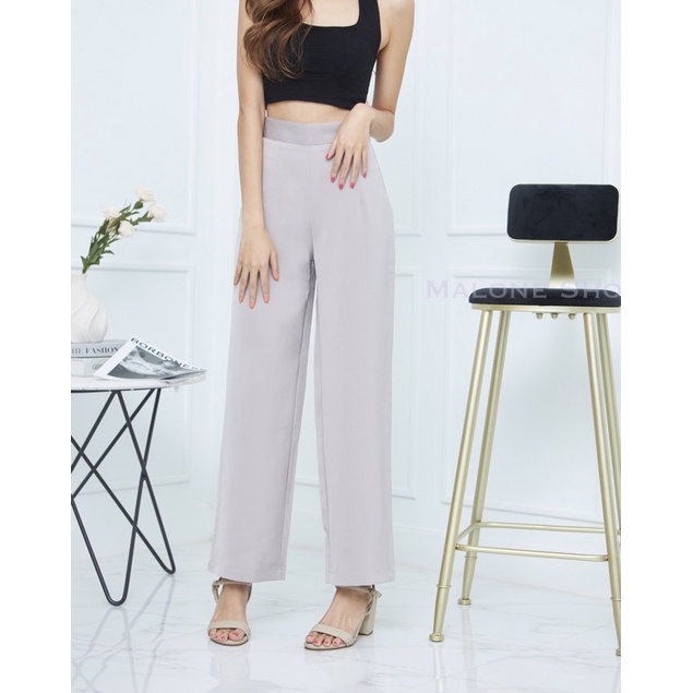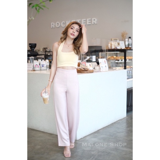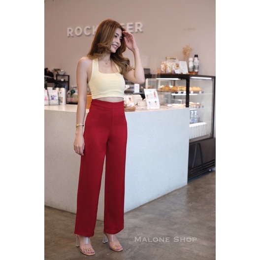 โค้ดส่วนลด 715SMEDDAY ขายดี🔥กางเกงขายาว เอวสูง ทรงกระบอกกลาง ผ้าฮานาโกะ