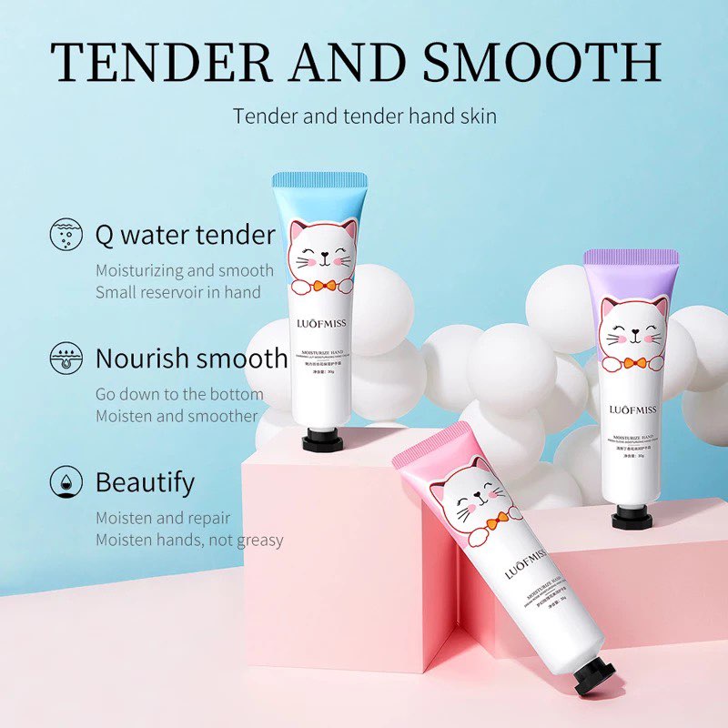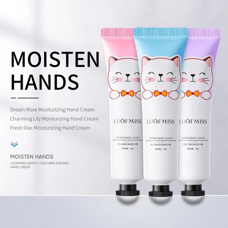 ครีมทามือ Luofmiss Hand Cream รุ่นหน้าแมว บำรุงผิวมือ เนียนนุ่มชุ่มชื้น กลิ่นหอมอ่อนๆ ขนาด 30 g. เลือกสูตรได้