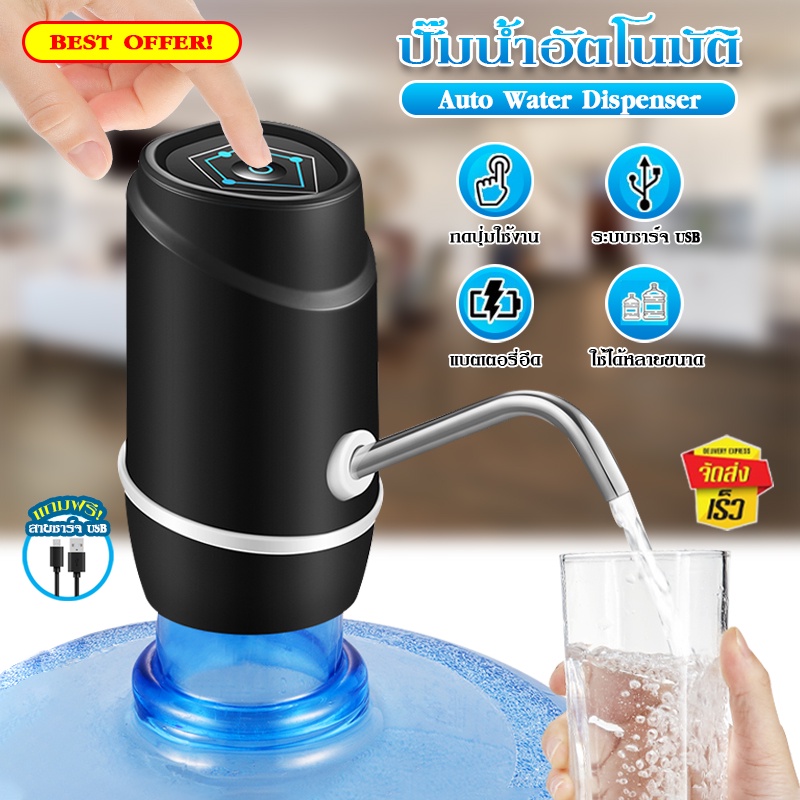 MOJU เครื่ องปั๊มน้ำอัตโนมัติ แบบชาร์จUSB เครื่องปั๊มน้ำถัง น้ำดื่ม ขวดน้ำ ถังน้ำ สีดำ Y055