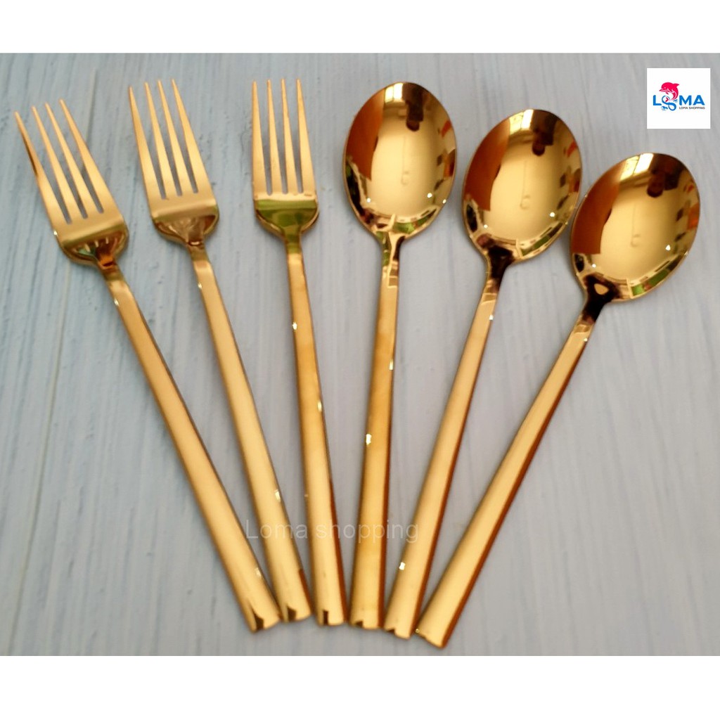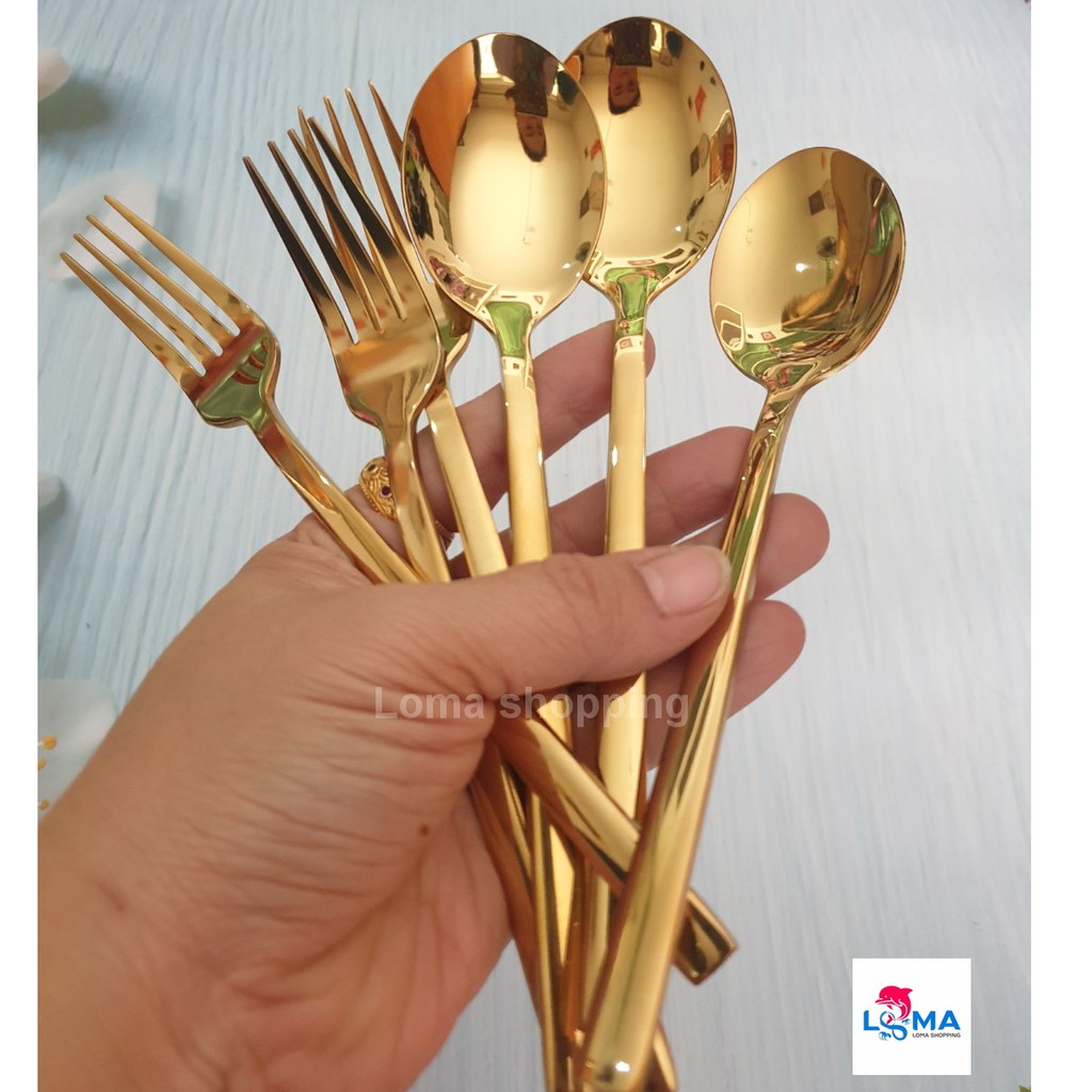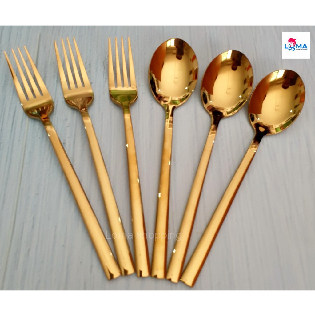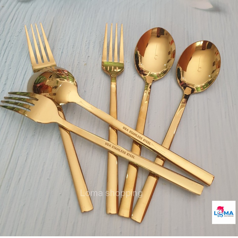 ช้อน ส้อมสีทอง สแตนเลสอย่างหนา USA stainless (( 1 คู่ ช้อน+ส้อม))