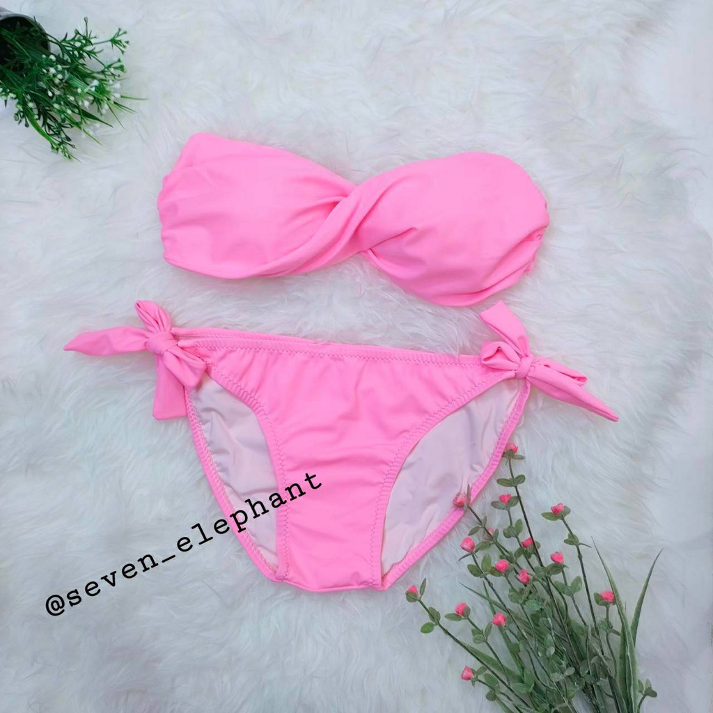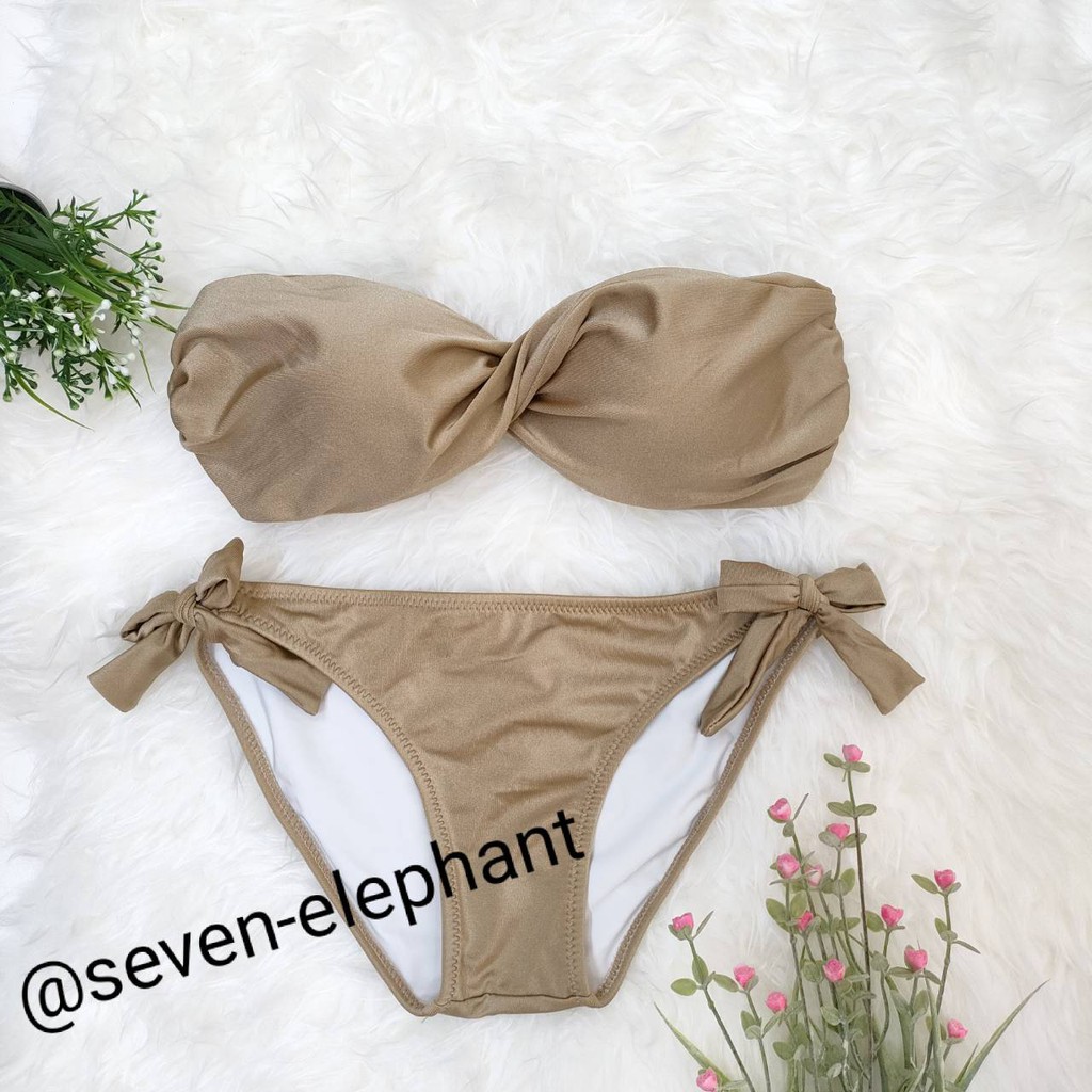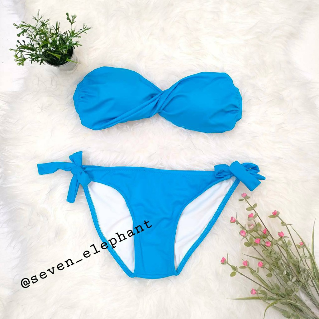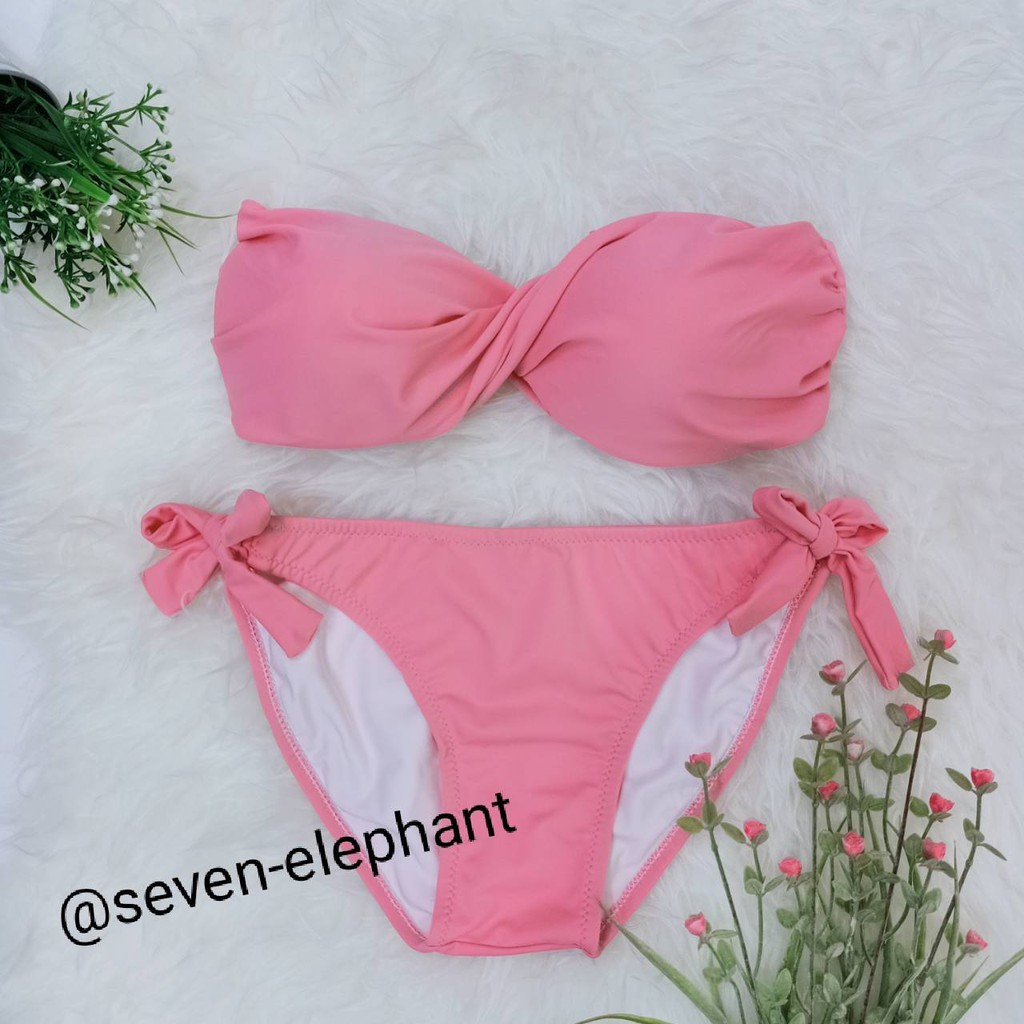 (หมดค่ะ)ชุดบิกินี ชุดว่ายน้ำ ทูพีช ทวิตกางเกงผูกข้าง สีพื้น มีสีให้เลือกเยอะ