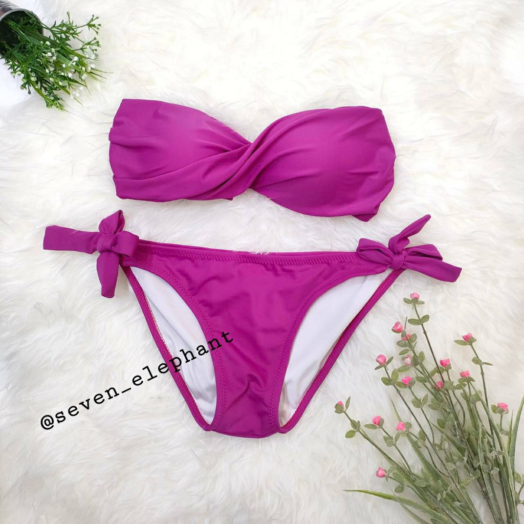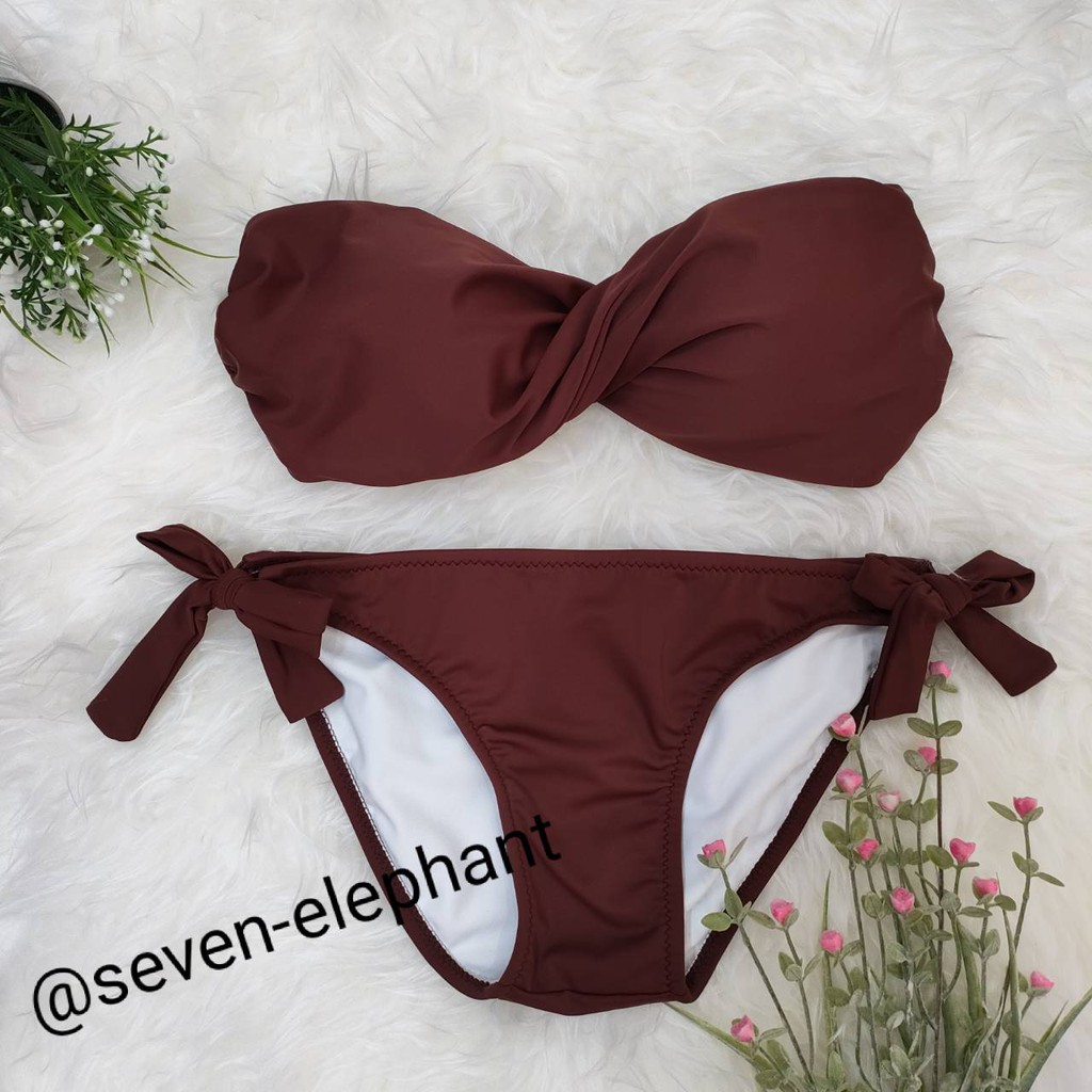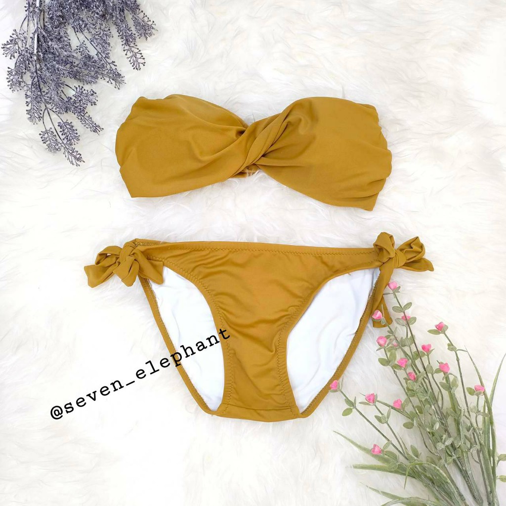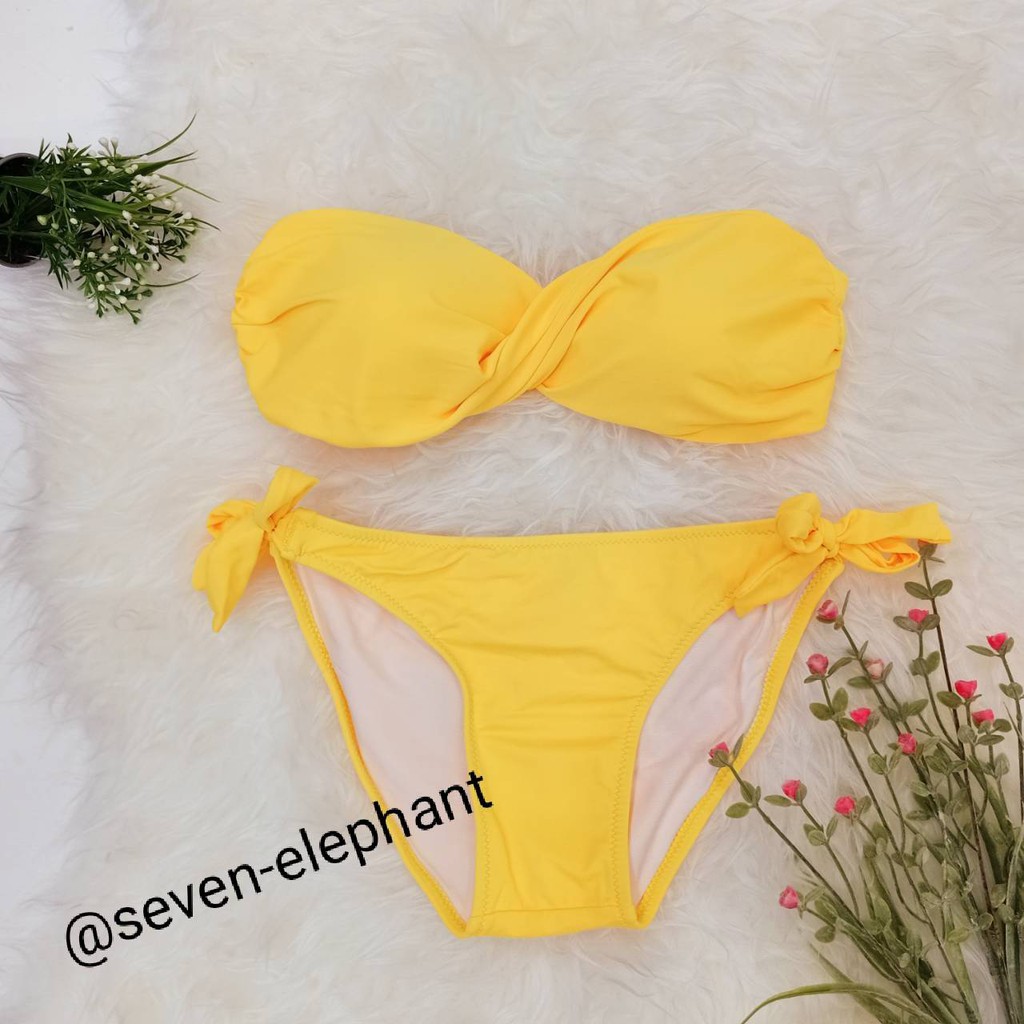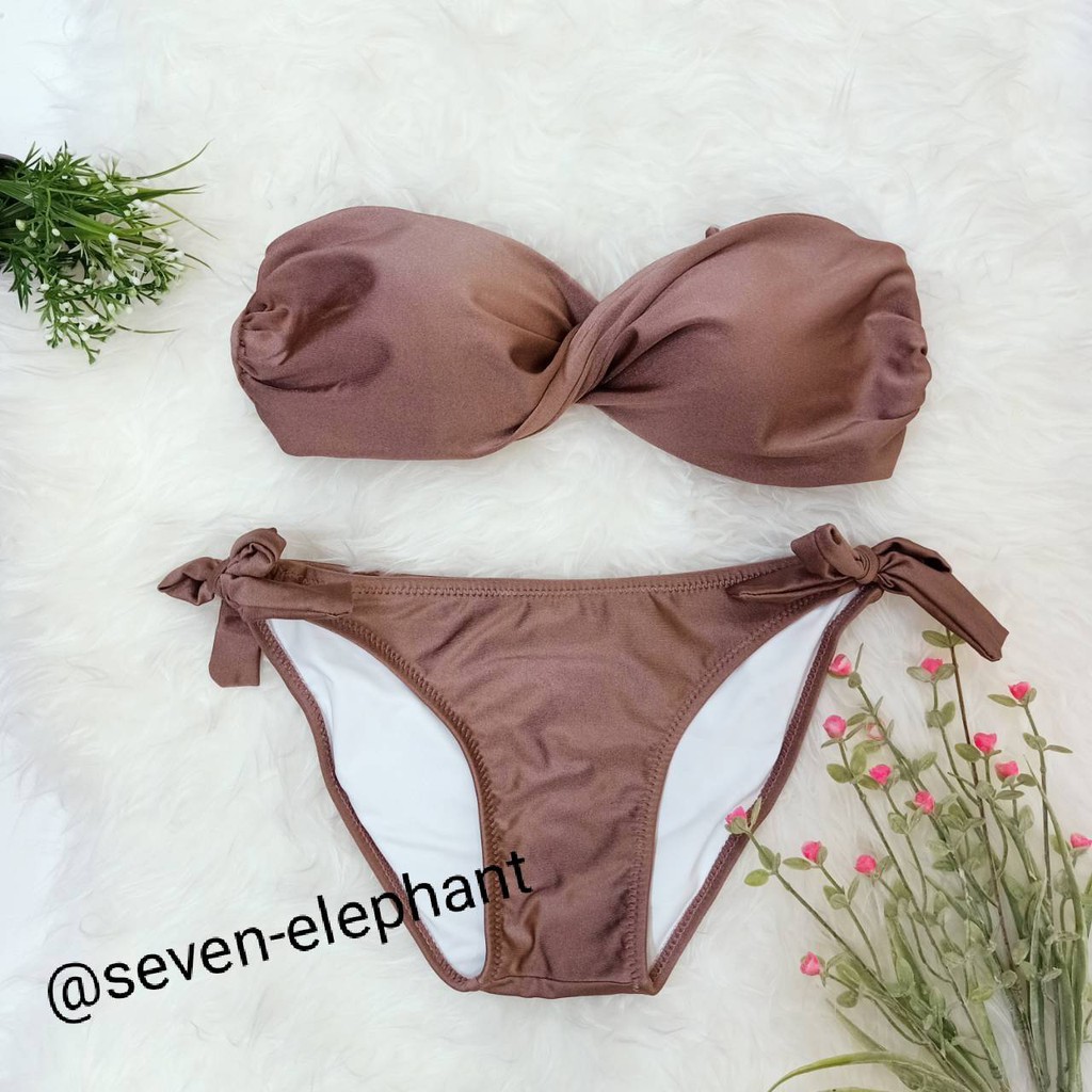 (หมดค่ะ)ชุดบิกินี ชุดว่ายน้ำ ทูพีช ทวิตกางเกงผูกข้าง สีพื้น มีสีให้เลือกเยอะ