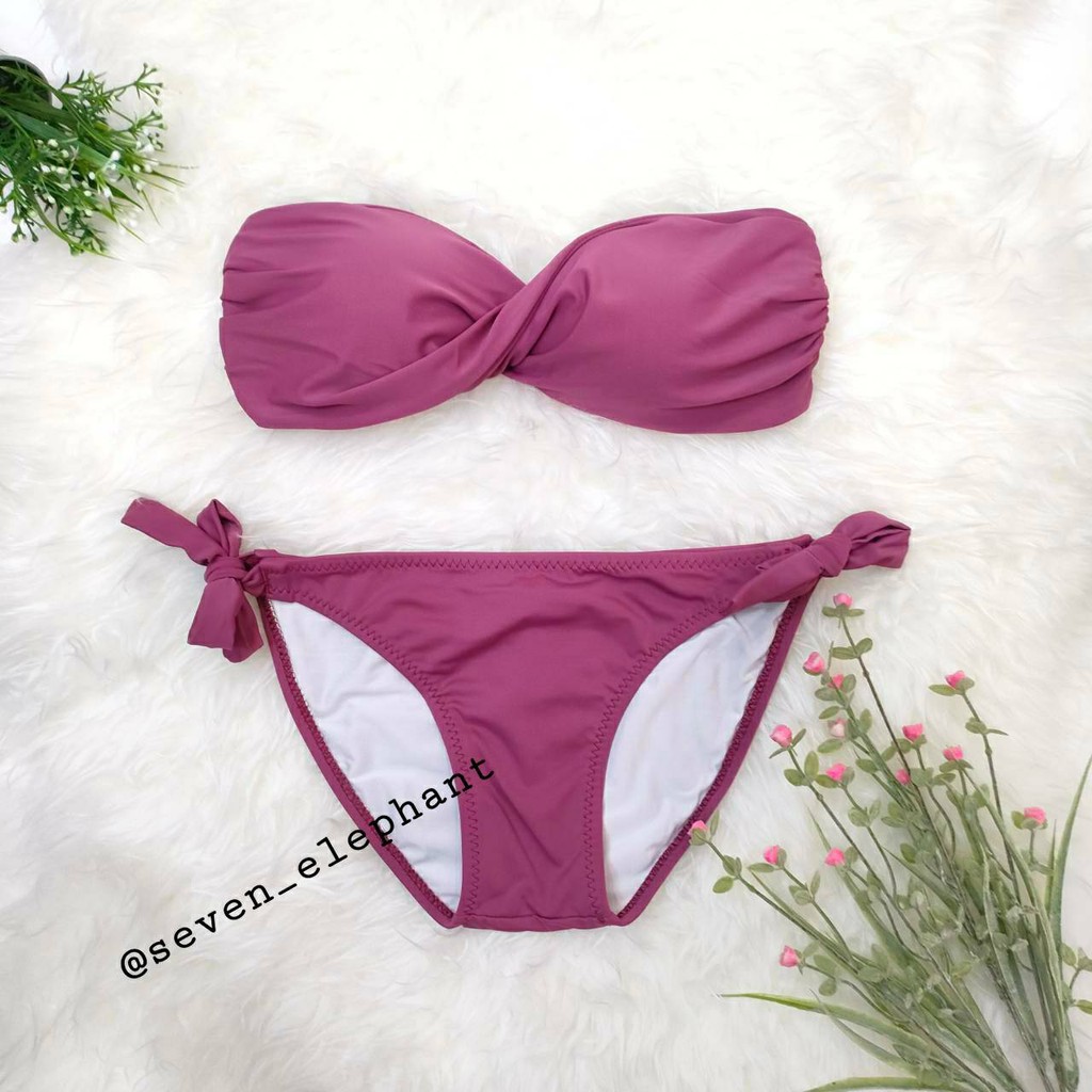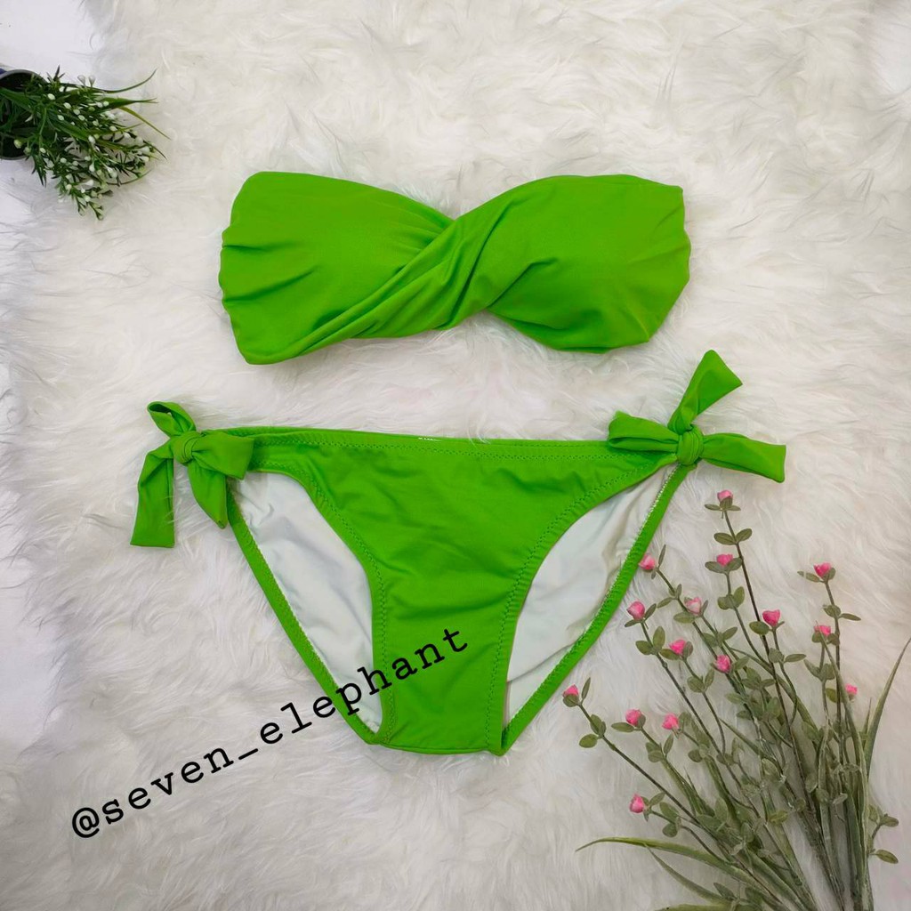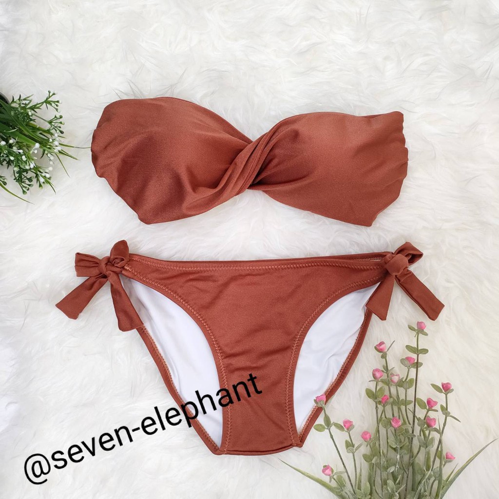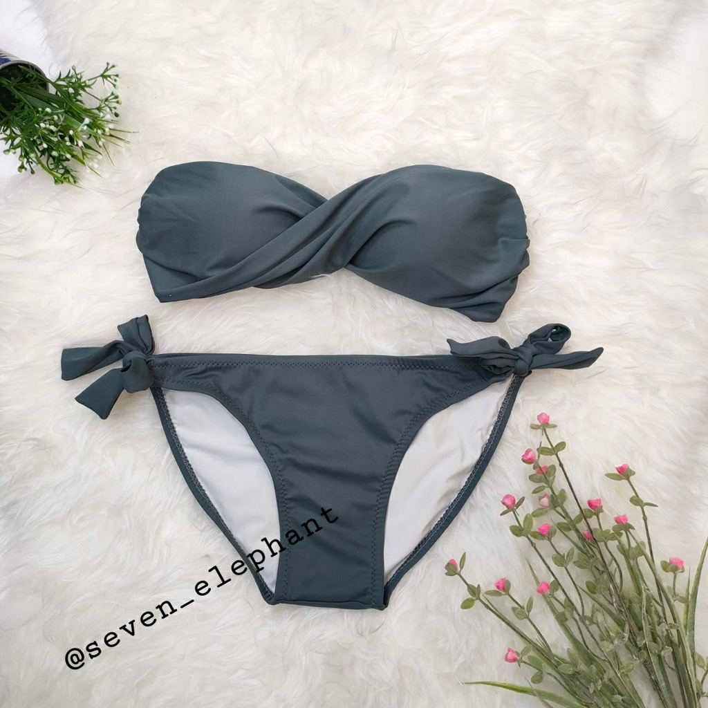 (หมดค่ะ)ชุดบิกินี ชุดว่ายน้ำ ทูพีช ทวิตกางเกงผูกข้าง สีพื้น มีสีให้เลือกเยอะ