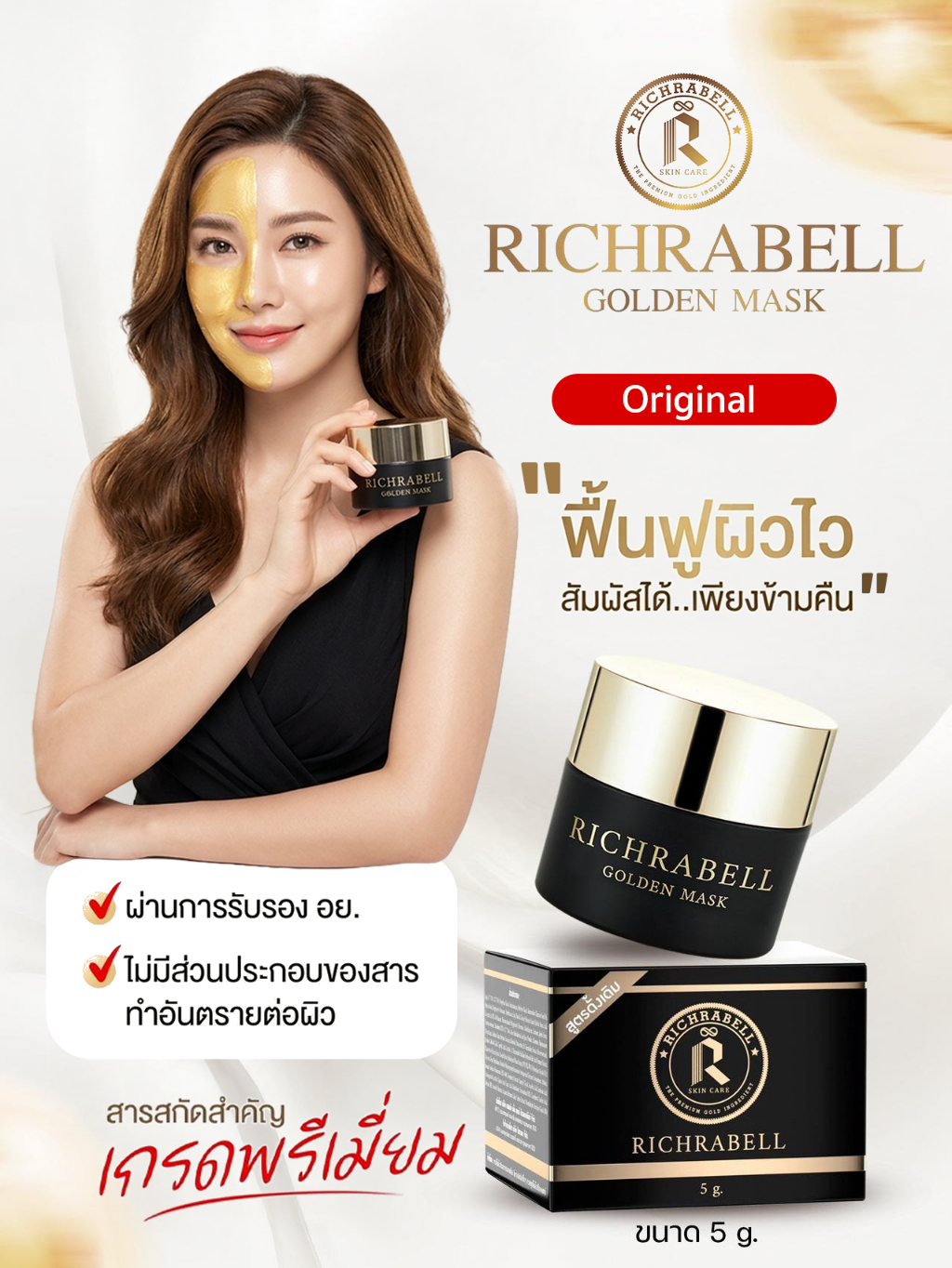 [ส่งด่วน] Richrabell ริชราเบล มาส์กทองคำ5g. (สูตร original) มาร์คหน้าใส ขาว ใส ริ้วรอย รอยสิว ฝ้า กระ จุดด่างดำ