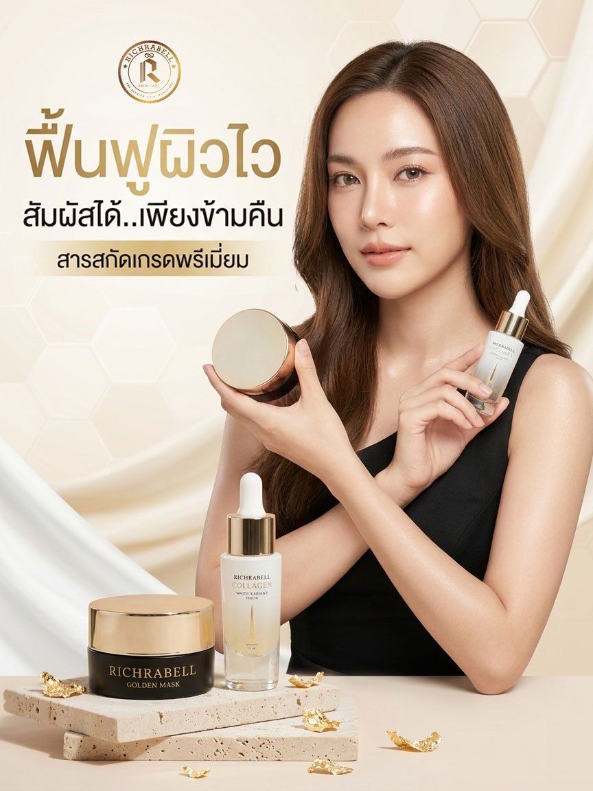 Richrabell ริชราเบล เซตคู่ บำรุงผิวกระจ่างใส ริชลาเบล มาร์กทองคำ เซรั่มทองคำ ผิวขาวใสเพียงชั่วข้ามคืน ฝ้า กระ จุุดด่างดำ