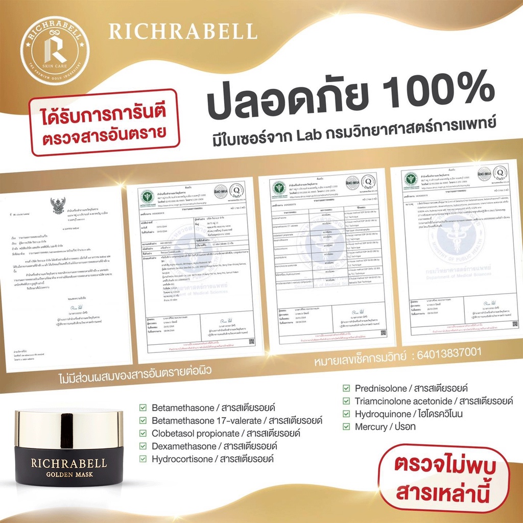 [ส่งฟรี+ของแถม] Richrabell (สูตร original) มาร์คทองคำ ริชราเบล ริ้วรอย รอยสิว ฝ้า กระ จุดด่างดำ กระชับรูขุมขน