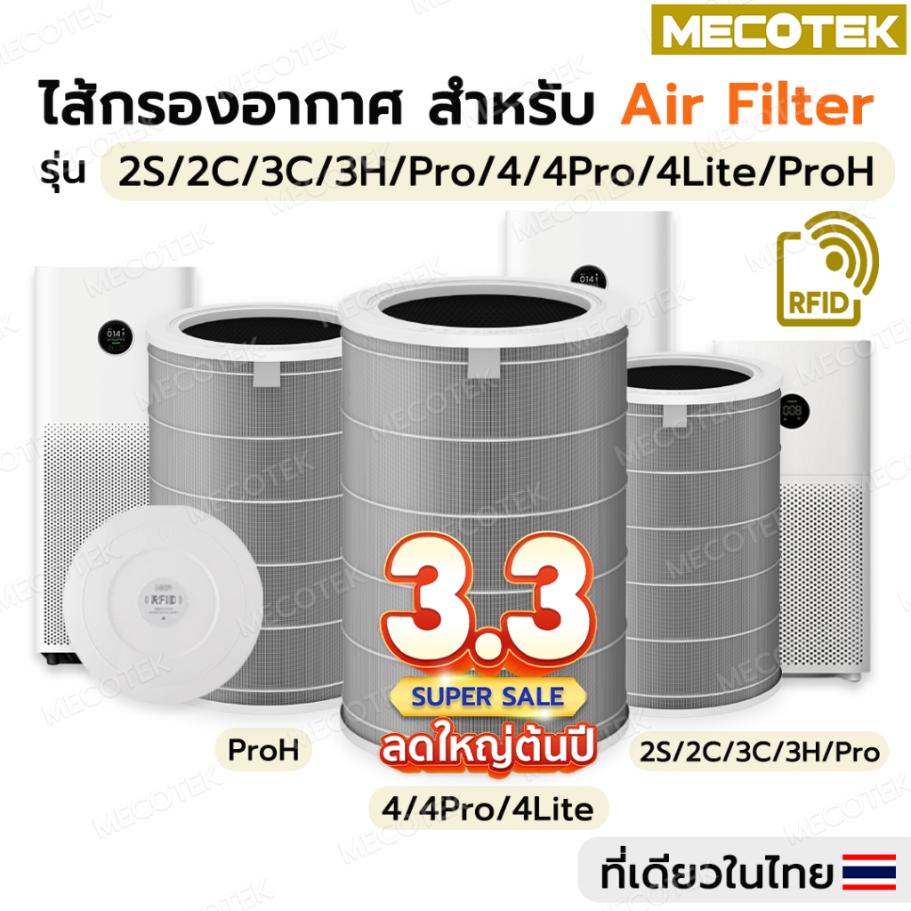 โปร3•3🎁สีเทาhepa H13(มี RFID)สำหรับ Xiaomi Mi Air Purifier Filter รุ่น 2S/2H/3C/Pro/ Xiaomi 4/ 4lite ไส้กรองเสี่ยวหมี่