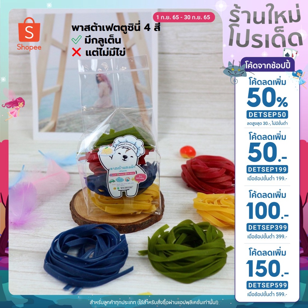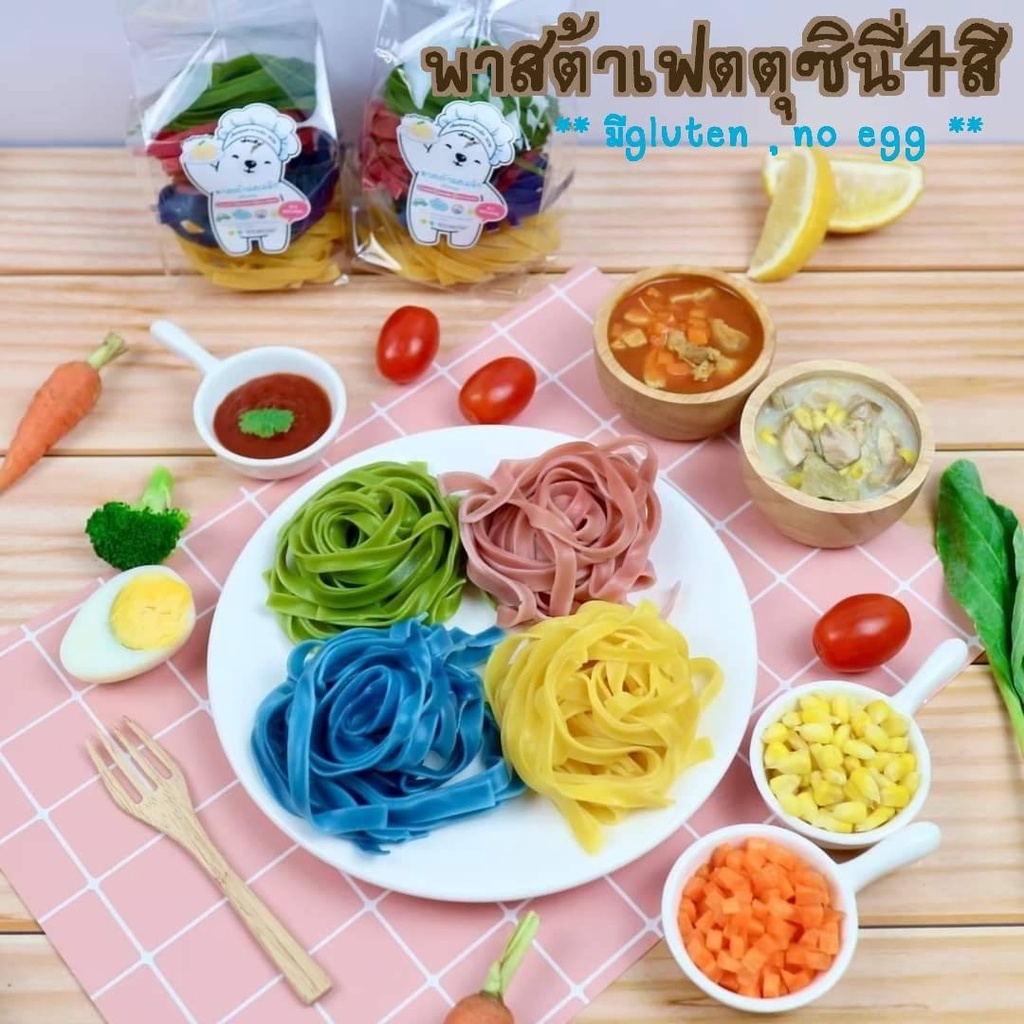 [เหลือชิ้นละ 11.- เก็บโค้ดหน้าร้าน+ใส่โค้ด INCSL99]พาสต้าเฟตตูซินี่ 4 สี 1แพคน้ำหนัก 100-130 กรัม ✅มีGluten ❌ไม่มีไข่