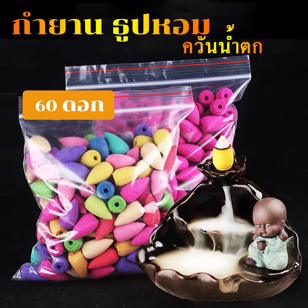 กำยานควันน้ำตก 60 เม็ด ธูปหอมกลิ่นดอกไม้ กำยานเทพ กำยานอินเดีย ราคาถูก