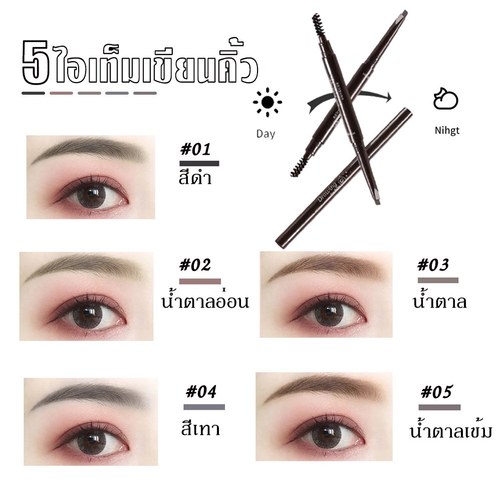 Drawing Eye Brow ดินสอเขียนคิ้ว 2in1 แบบหมุน พร้อมแปรงปัดคิ้ว ปากกาเขียนคิ้ว ที่เขียนคิ้ว กันน้ำ สีสวย ติดทนนาน กันน้ำ
