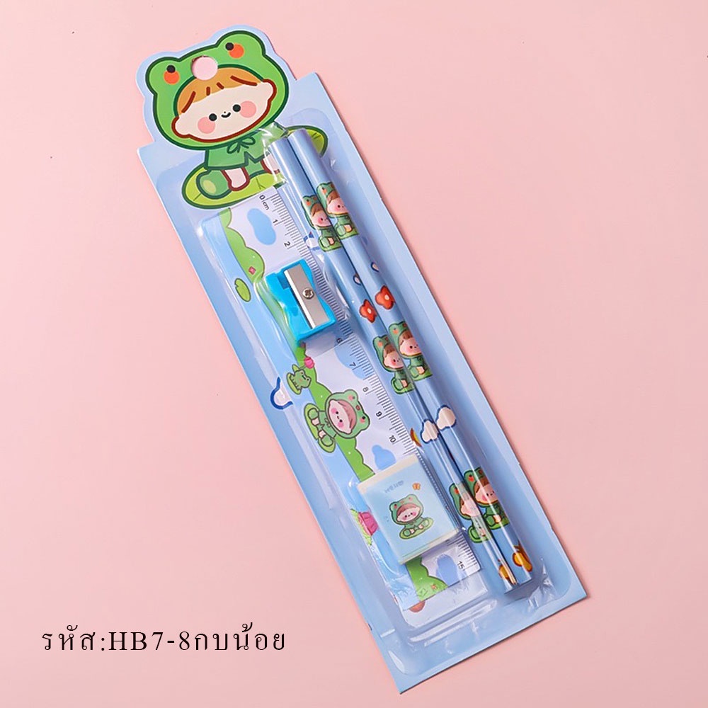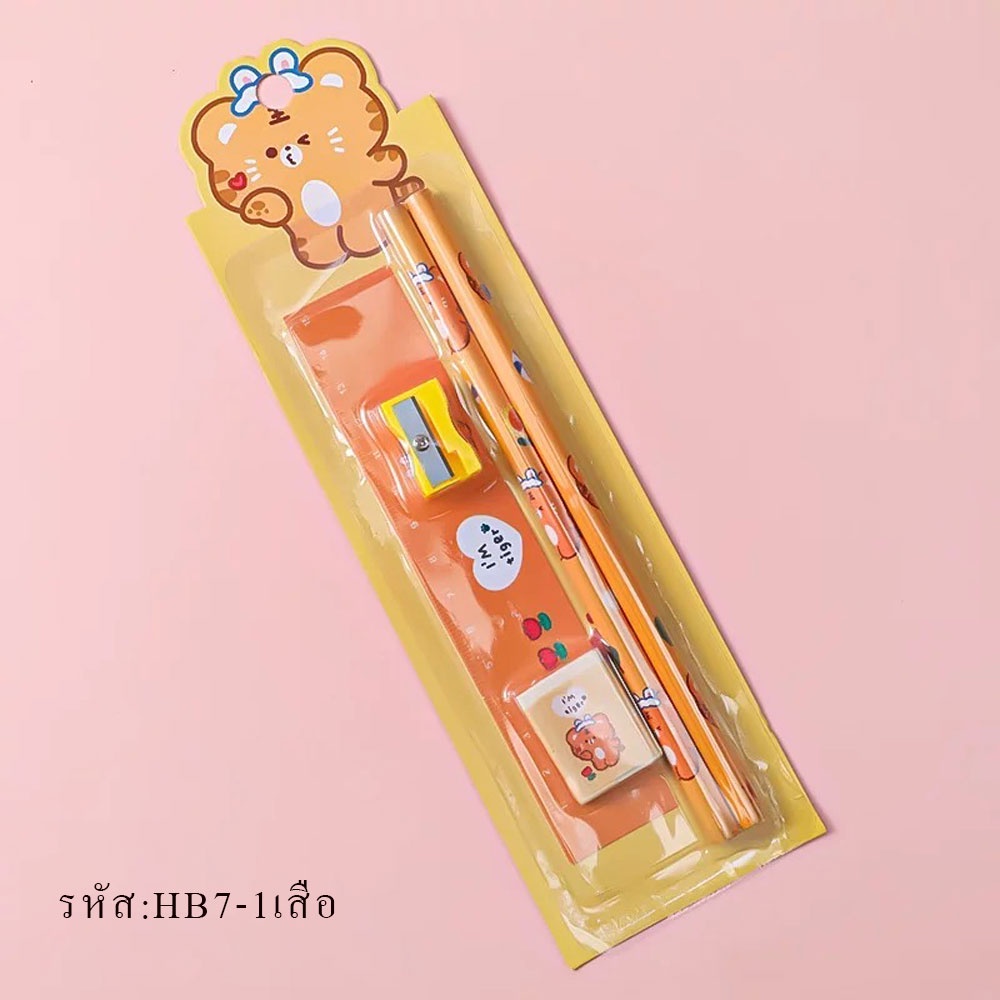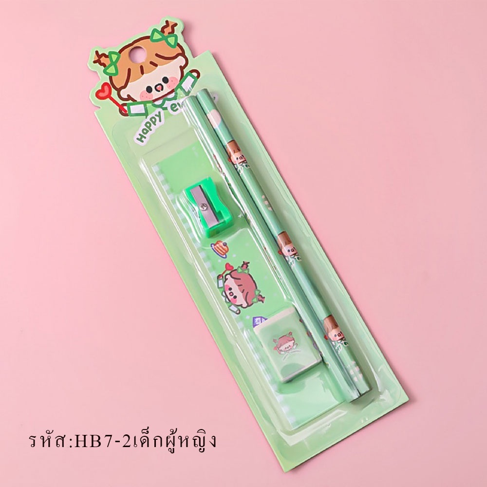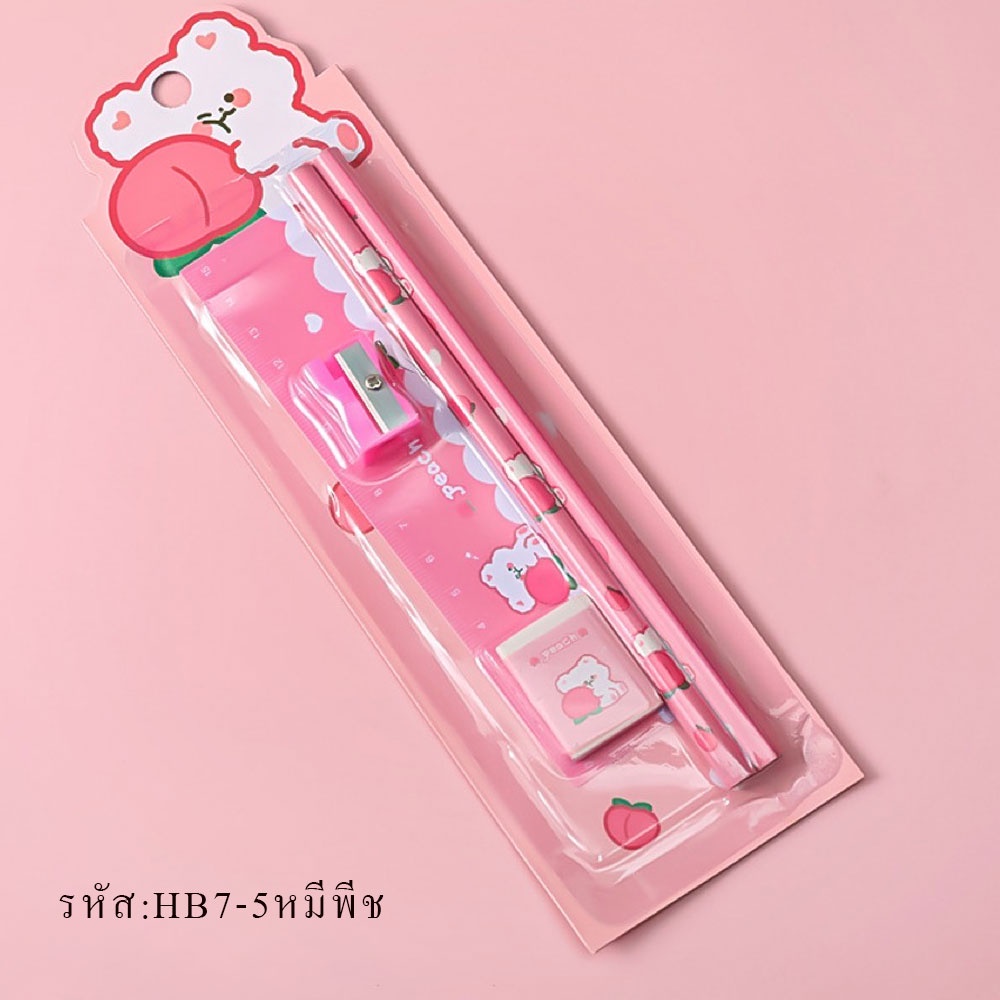 HB7 ชุดดินสอ ชุด5 ชิ้น น่ารักน่ารัก HB เครื่องเขียน อุปกรณ์การเรียน ยางลบ ดินสอ ไม้บรรทัด กบเหลาดินสอ พร้อมส่ง