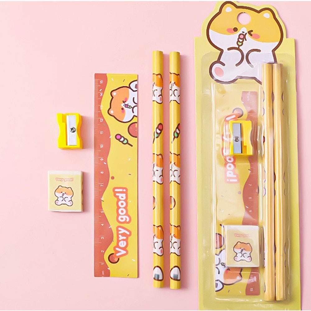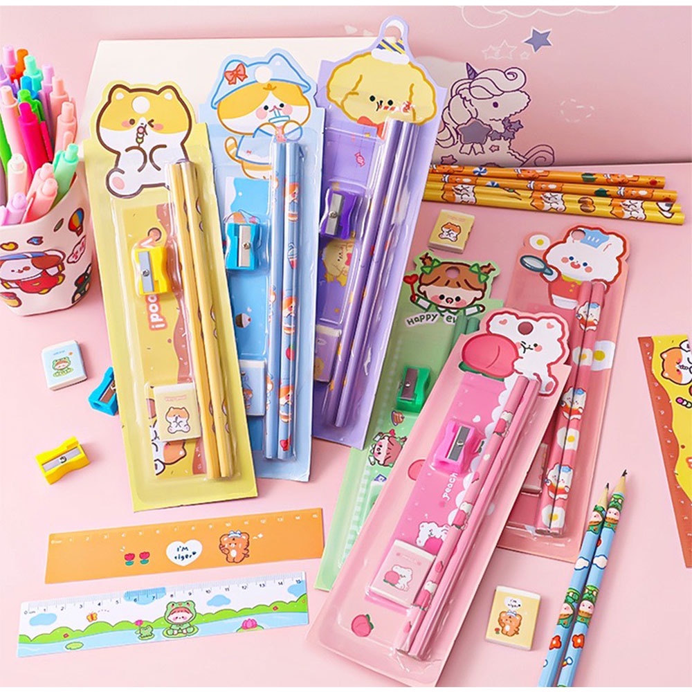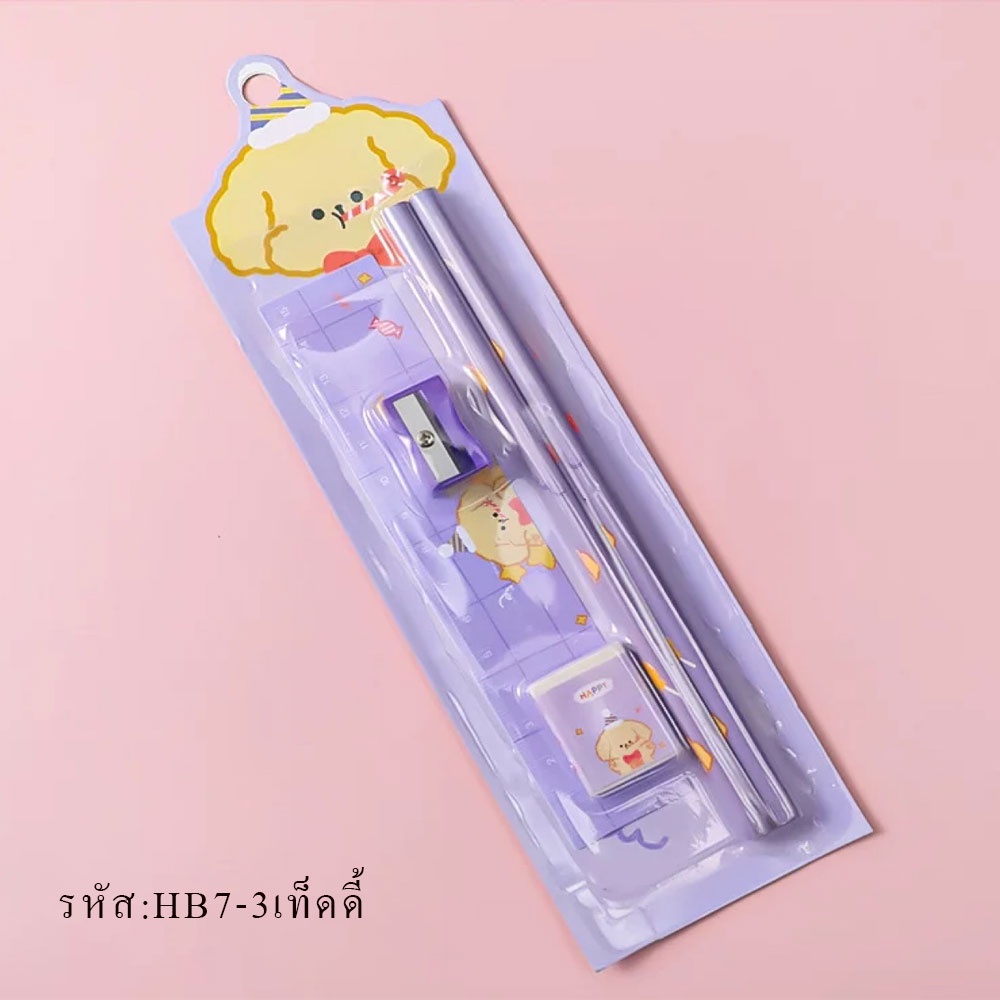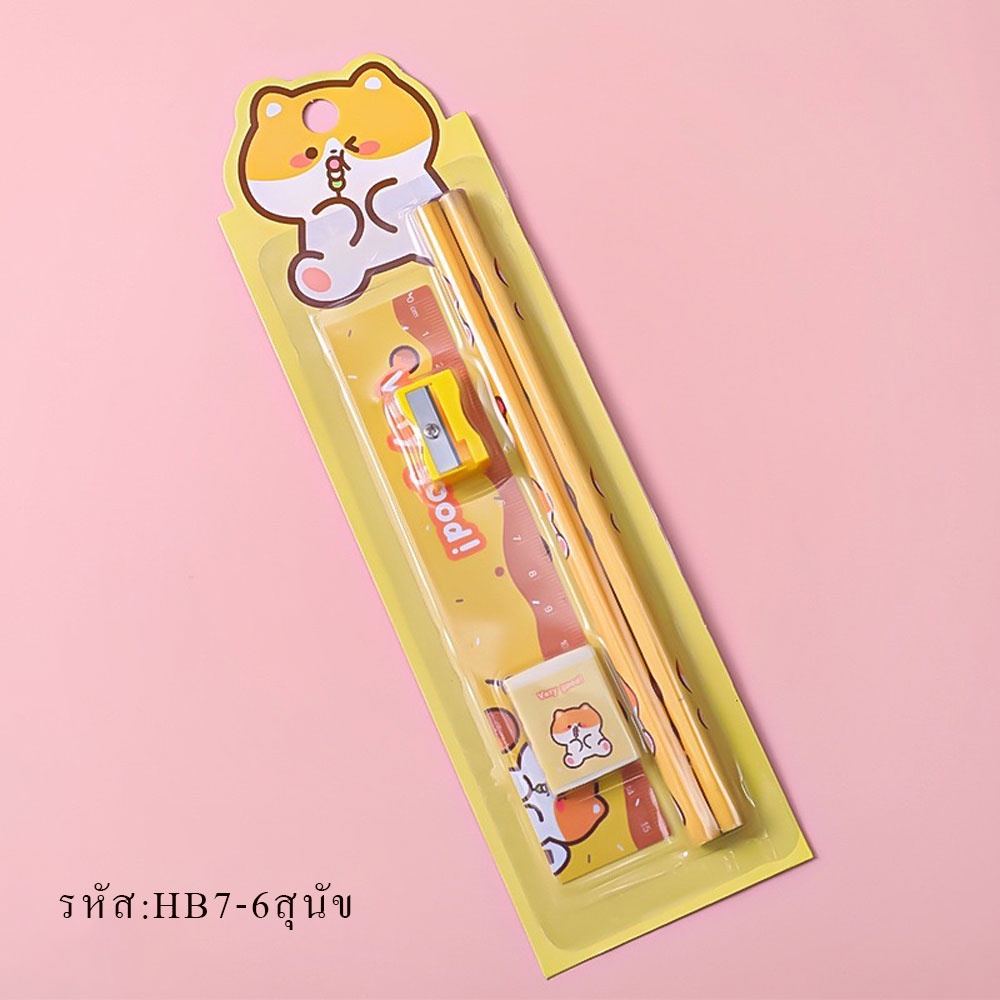 HB7 ชุดดินสอ ชุด5 ชิ้น น่ารักน่ารัก HB เครื่องเขียน อุปกรณ์การเรียน ยางลบ ดินสอ ไม้บรรทัด กบเหลาดินสอ พร้อมส่ง