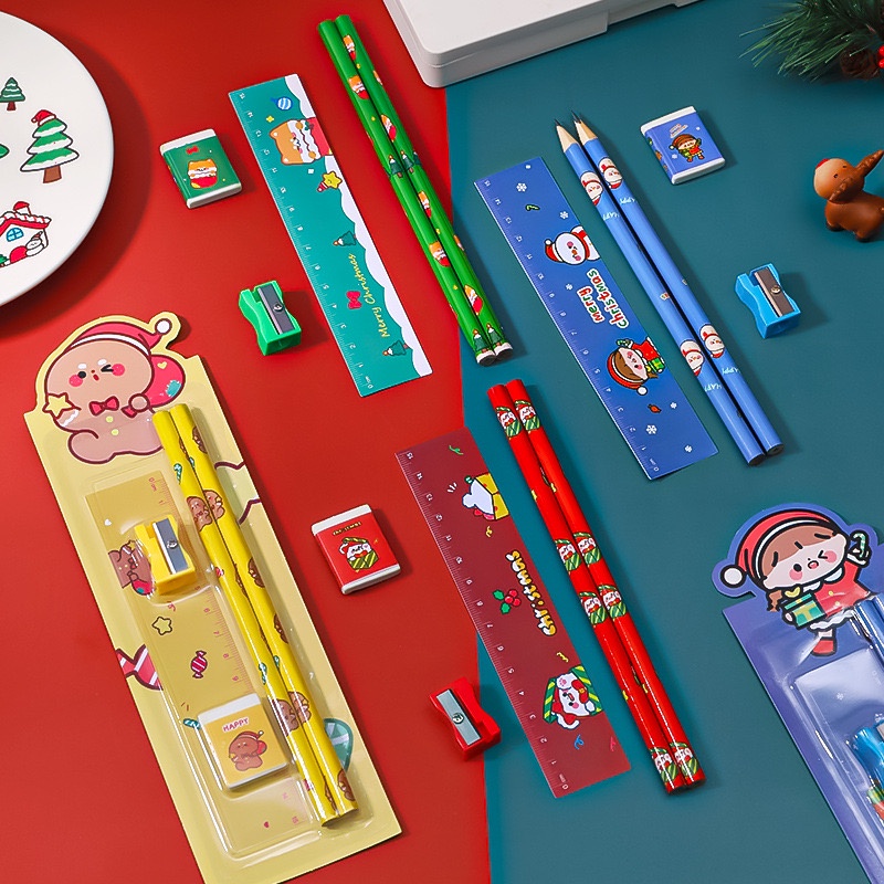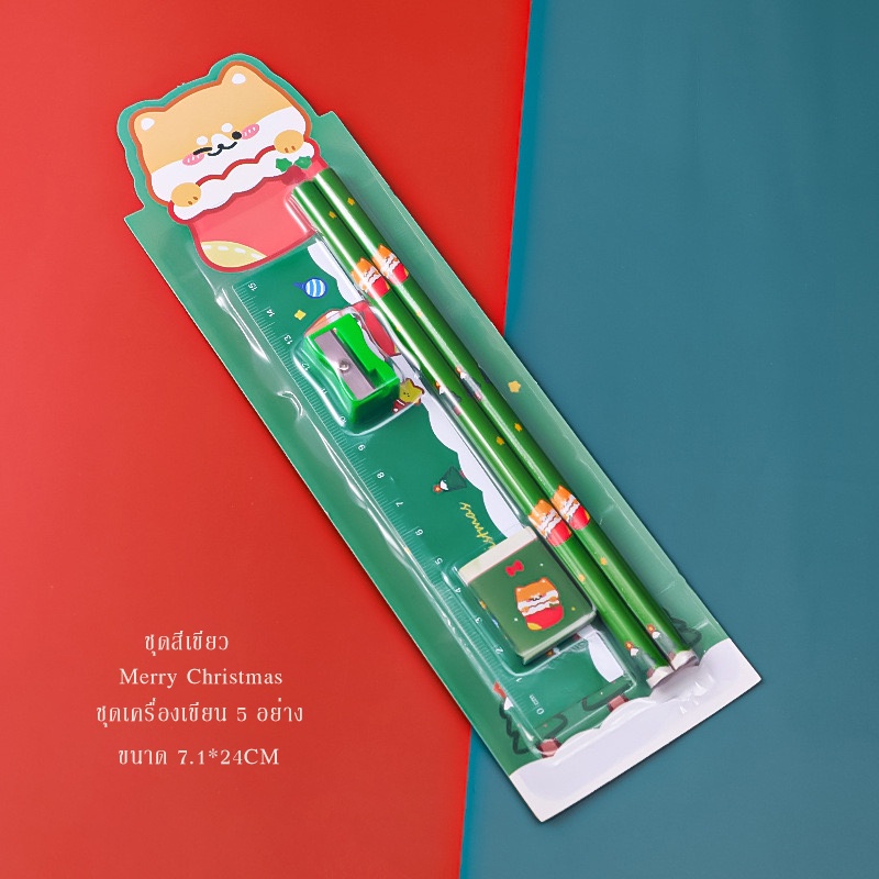 ใหม่ ชุดดินสอ มี5 ชิ้น ลายคริสต์มาส ดินสอ ยางลบ ลายคริสต์มาส ชุดสําหรับเด็กนักเรียน เครื่่องเขียน ดินสอ