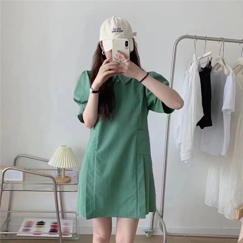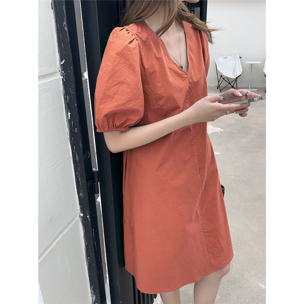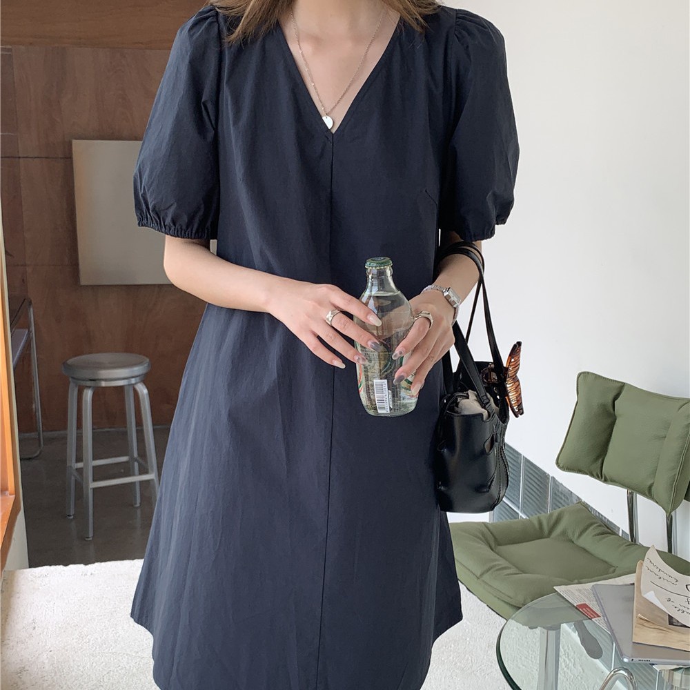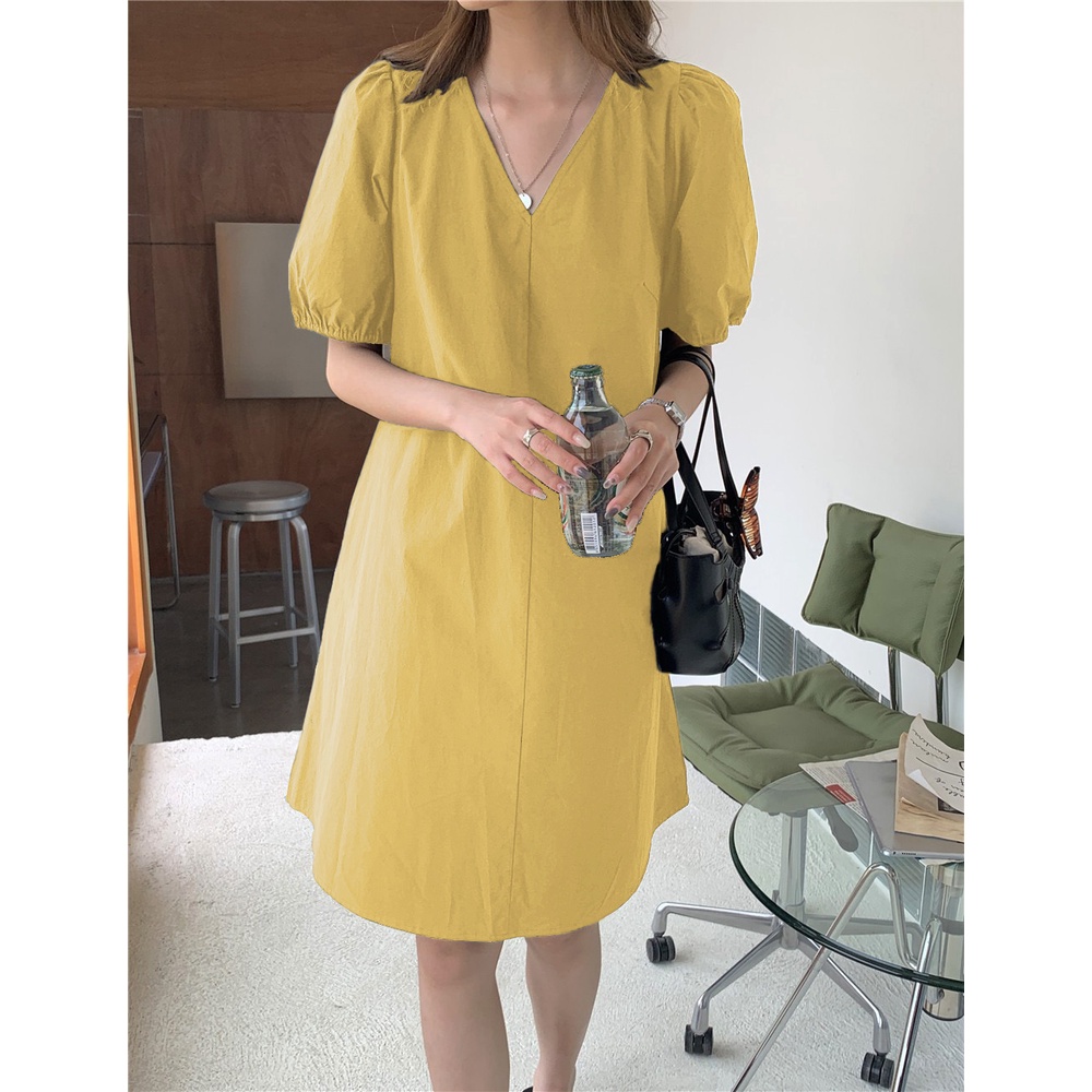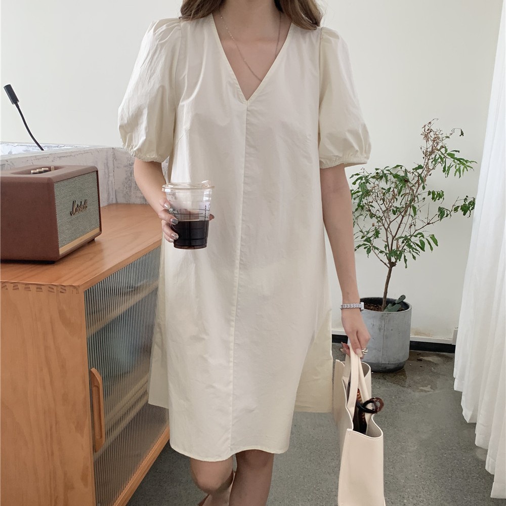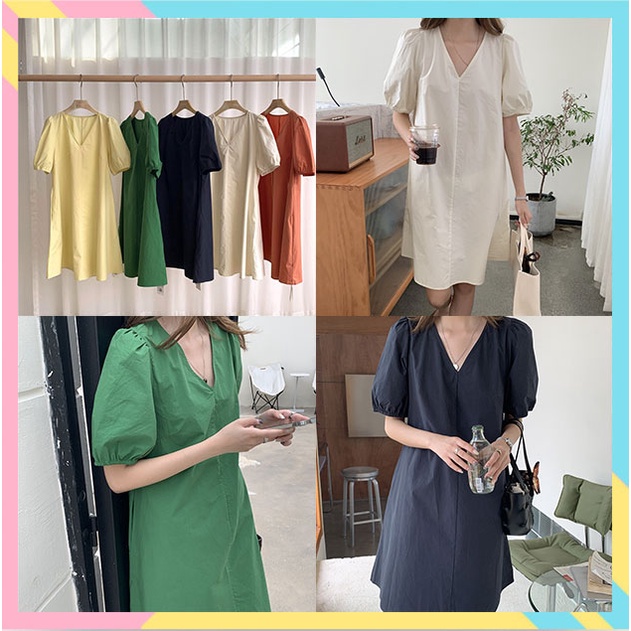 LHSunshine 🌞 🍀 ชุดเดรสคอวีแขนตุ๊กตาสไตล์มินิมอลสุดชิค✨ ใส่ไปเดินเล่นเก๋ๆกับรองเท้าแตะได้💗ในลุควันเบาๆ เรียบเก๋แถมดูแพง ห้