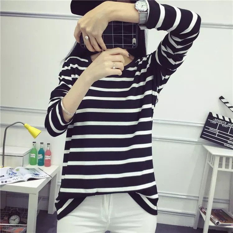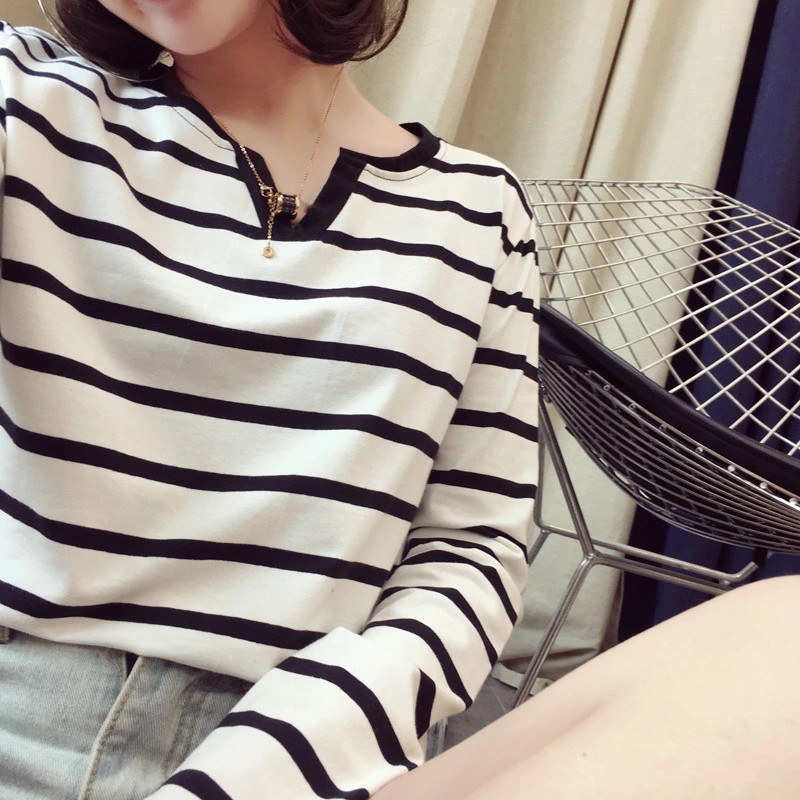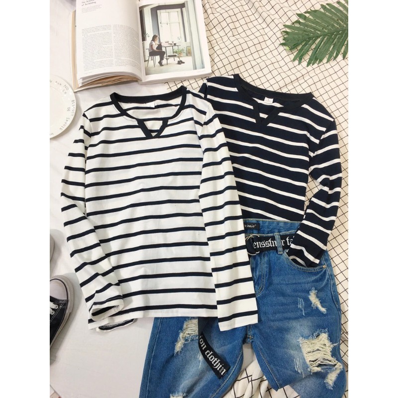 SUNDAY2020 🎀 Best seller เสื้อยืดลายทางแขนยาวสไตล์เกาหลี🖤🤍