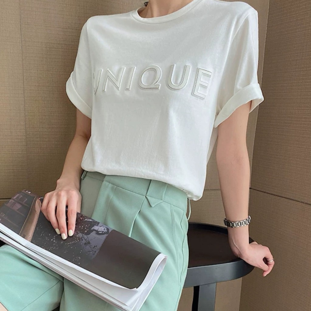 SUNDAY2020🎀 เสื้อยืดสกรีอักษรนูนงานดีมากเนื้อผ้านุ่มเบาใส่สบาย
