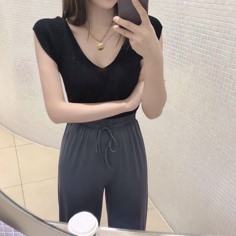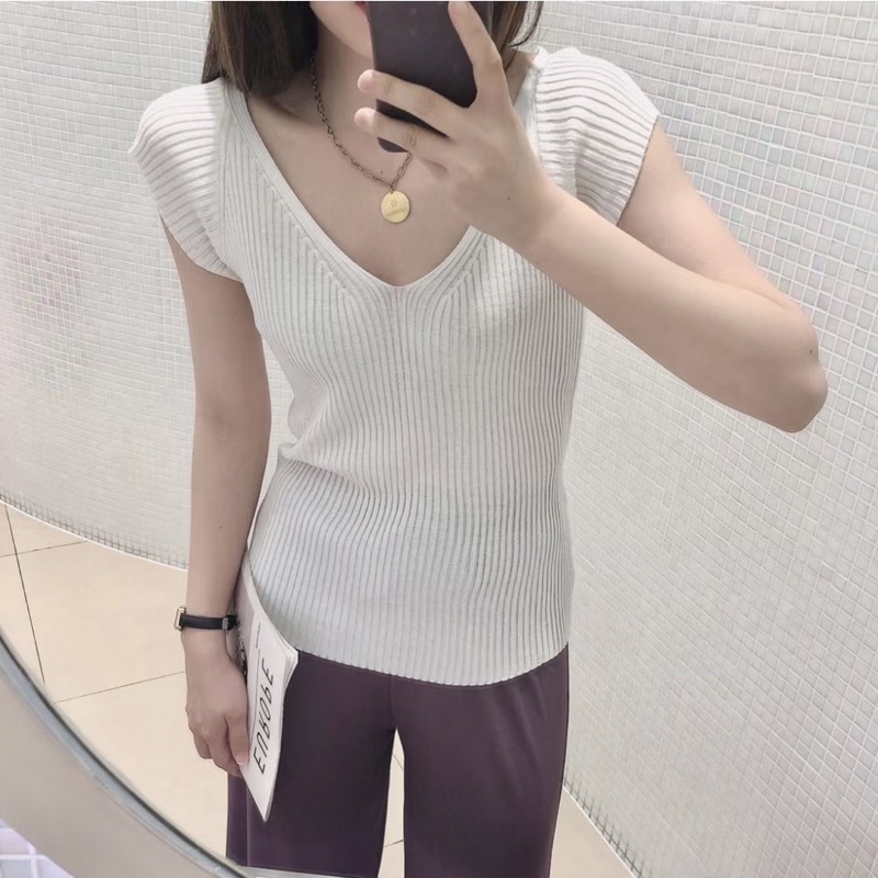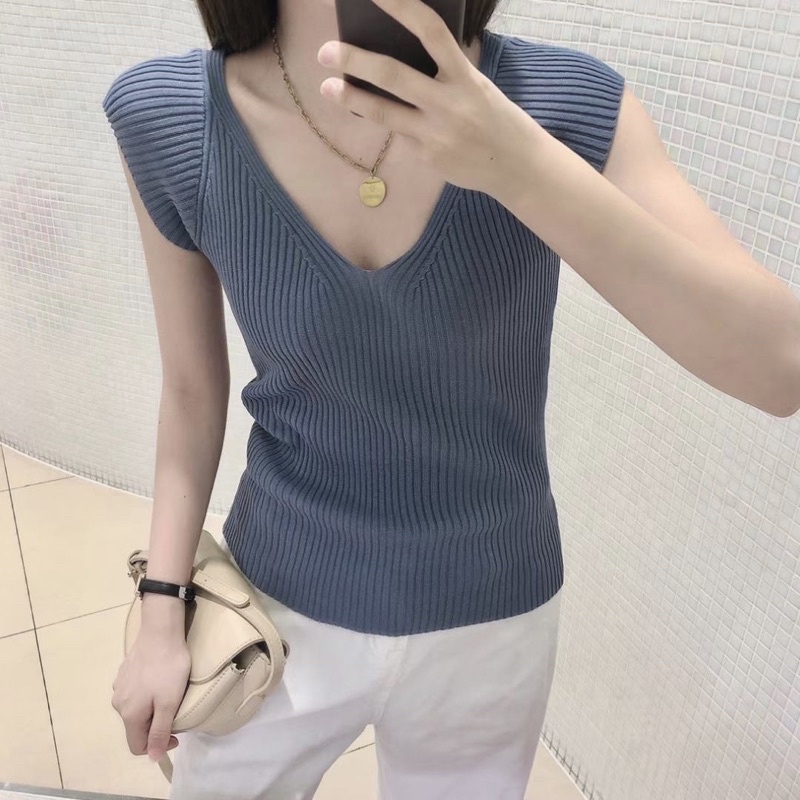 Ey_shop688✨พร้อมส่ง✨6056/JN.AH#เสื้อแฟชั่นเกาหลีแขนสั้น #เสื้อผ้าไหมพรมคอวี #ผ้ายืดได้มีหลายสีใส่สบาย💕
