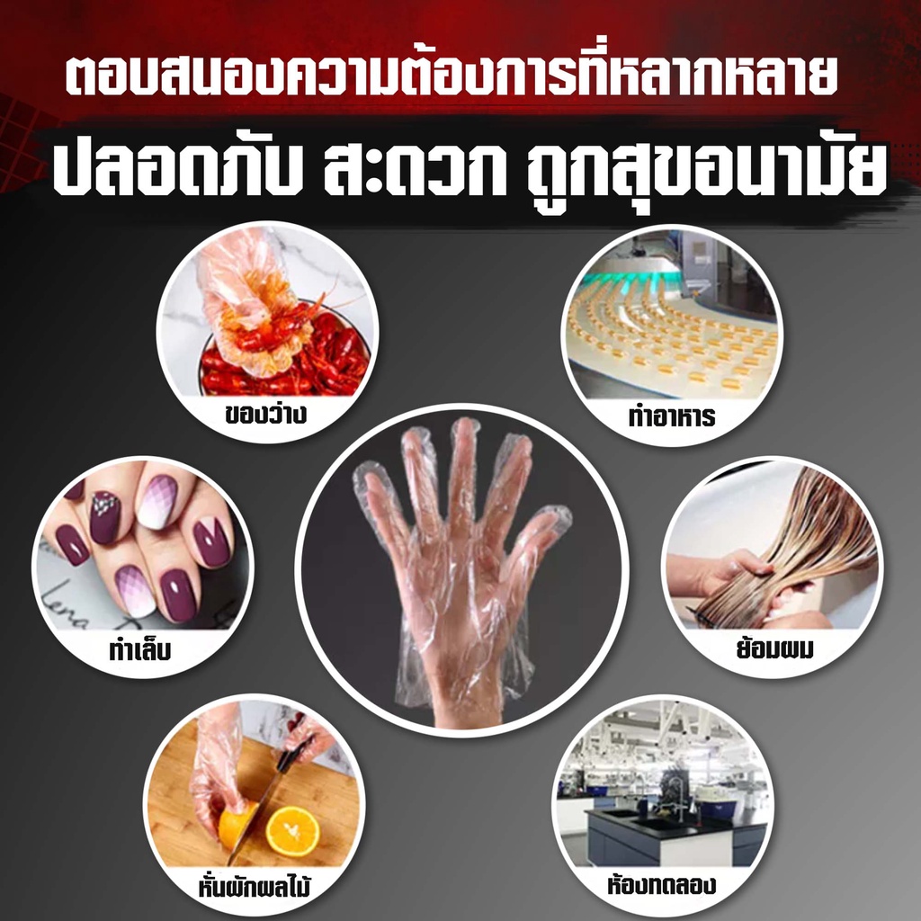 ถุงมือพลาสติกใส 100 ชิ้น แบบใช้แล้วทิ้ง ถุงมือทำอาหาร